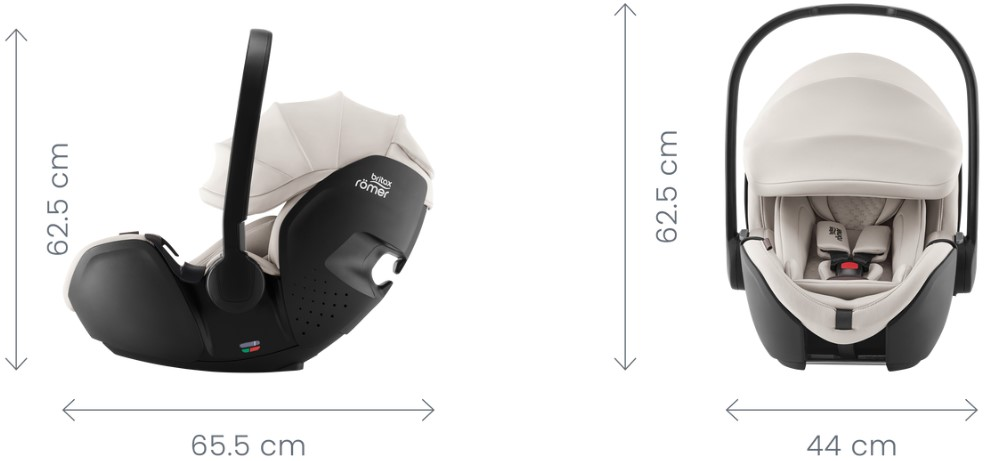 Создано для удобства. При весе всего 3.9 кг автокресло очень легкое и удобное для переноски. Очень большой солнцезащитный капюшон с УФ 50+ можно легко отрегулировать, чтобы обеспечить оптимальное укрытие и защиту для вашего ребенка. Очень просто снимается с базы, а включение и выключение функции Ergo Recline можно сделать одной рукой, что очень удобно во время поездки. Автокресло Baby-Safe Pro также можно использовать с прогулочными колясками Britax Römer и других ведущих брендов (необходимы дополнительные адаптеры).