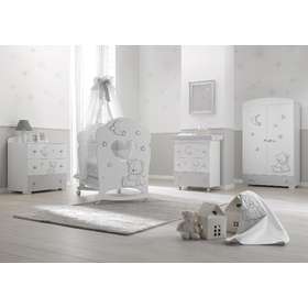 Приятные особенности :  тумба Итальянского производства для детской комнаты. Входит в коллекцию мебели и аксессуаров Stella, что в переводе означает «Звезда». Тумба оснащена тремя глубокими выдвижными ящиками на надежных металлических направляющих. Они удобны для хранения белья, постельных принадлежностей, одежды и других детских вещей. Фасады декорированы объемной аппликацией в виде очаровательного белого мишки на фоне ночного неба, луны, звезд и облачков. Дизайн придаст комнате особый, уникальный стиль, созданный специально для новорожденных. Все материалы прошли тщательную проверку, не содержат опасных формальдегидов и других нерекомендованных веществ.