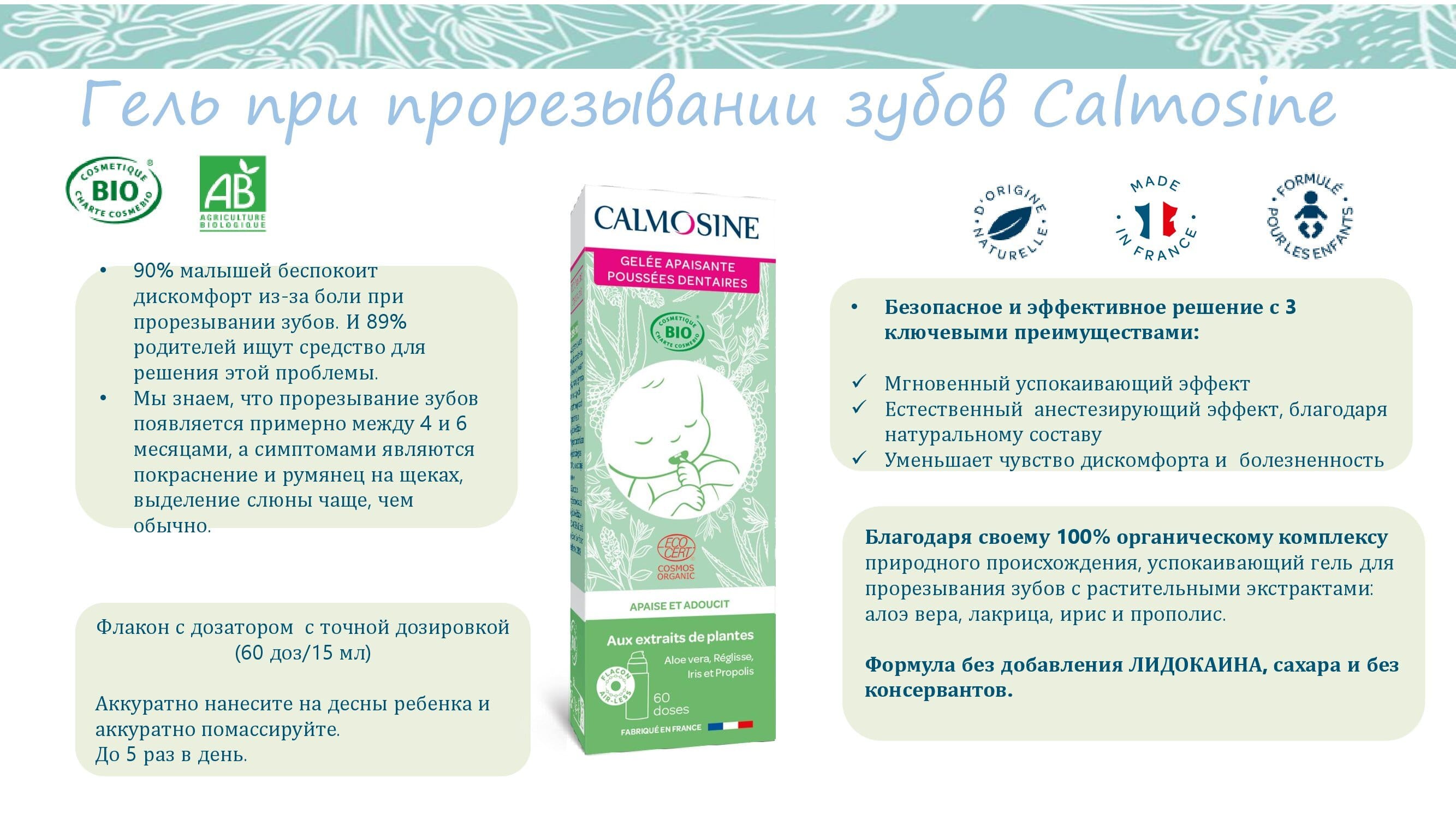 Calmosine (Biolane) детский гель для десен при прорезывании зубов "Успокаивающий" (15 мл = 60 доз)