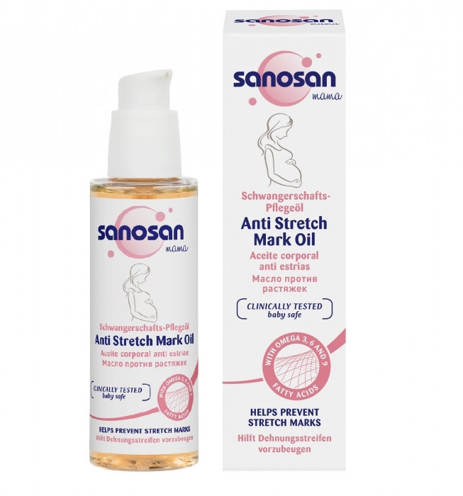 Sanosan Масло против растяжек содержит комплекс 4 натуральных масел: масло виноградных косточек, миндальное масло, оливковое масло и масло семечек подсолнечника. Сохраняет упругость кожи во время беременности, предотвращая появление растяжек. Содержит полиненасыщенные жирные кислоты омега-3, омега -6 и омега-9. Переносимость кожей подтверждена Клиническими испытаниями в Германии. Осторожными массирующими движениями нанесите масло на кожу живота, бедер, ягодиц и груди. Используйте масло утром и вечером с начала беременности. Для достижения оптимального эффекта рекомендуется наносить масло при помощи легких "пощипывающих" движений. Такой массаж способствует мягкому растяжению кожи для повышения ее эластичности.