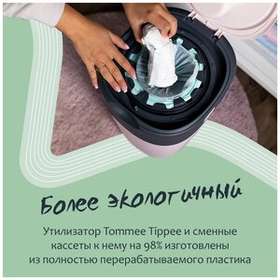 Кассеты Tommee Tippee Twist & Click для утилизатора подгузников выполнены из экологически чистого антибактериального материала Greenfilm. В упаковке 3 штуки