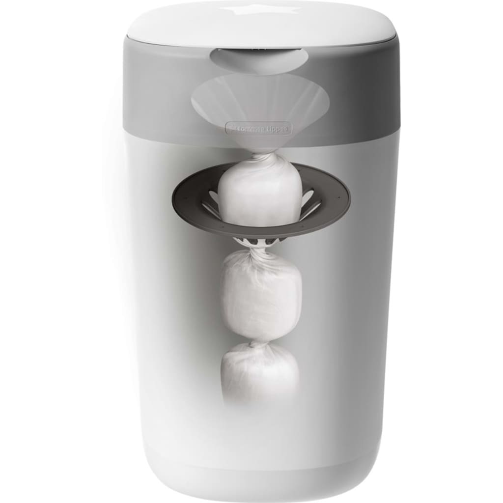 TOMEE TIPPEE Twist & Click — это единственный утилизатор для подгузников, который вращается и индивидуально заворачивает каждый подгузник, уничтожая запахи и бактерии, сохраняя при этом ваш дом в чистоте и без запаха. Многослойная антибактериальная пленка в 100 раз эффективнее пакетов для подгузников, потому что она защищена биомастером и убивает 99% опасных бактерий, таких как кишечная палочка и золотистый стафилококк. При контакте он останавливает расщепление белка в бактериях, ответственных за многие неприятные запахи. Умная крышка-уплотнитель скрывает все неприятные запахи, а встроенный поршень проталкивает подгузники глубоко в резервуар, сохраняя ваши руки чистыми. Новорожденным детям может потребоваться смена до 12 подгузников в день. Это 84 подгузника за неделю и много грязных подгузников, которые нужно выбрасывать каждое утро. Несмотря на свой компактный размер, резервуар для подгузников Twist & Click может вмещать до 28 подгузников за раз, что означает меньше времени на переход к внешнему резервуару.