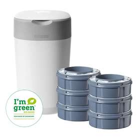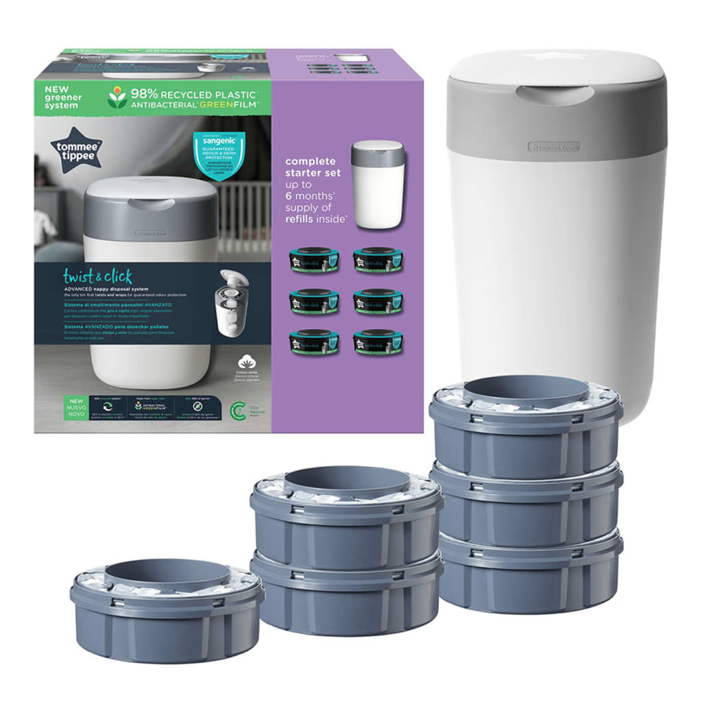 Чтобы уменьшить воздействие на окружающую среду, все сменные картриджи для подгузников TOMEE TIPPEE изготовлены на 98% из переработанного пластика. Обратите внимание, что система выброса подгузника Twist & Click совместима только со сменными блоками TOMEE TIPPEE Twist & Click.