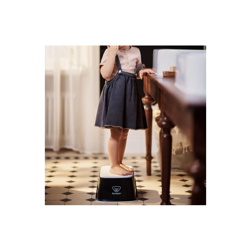 С помощью BabyBjorn Стульчика-подставки дети могут самостоятельно забраться на туалетное сиденье или дотянуться до раковины. Он надежно стоит на полу и не скользит благодаря резиновым планкам.