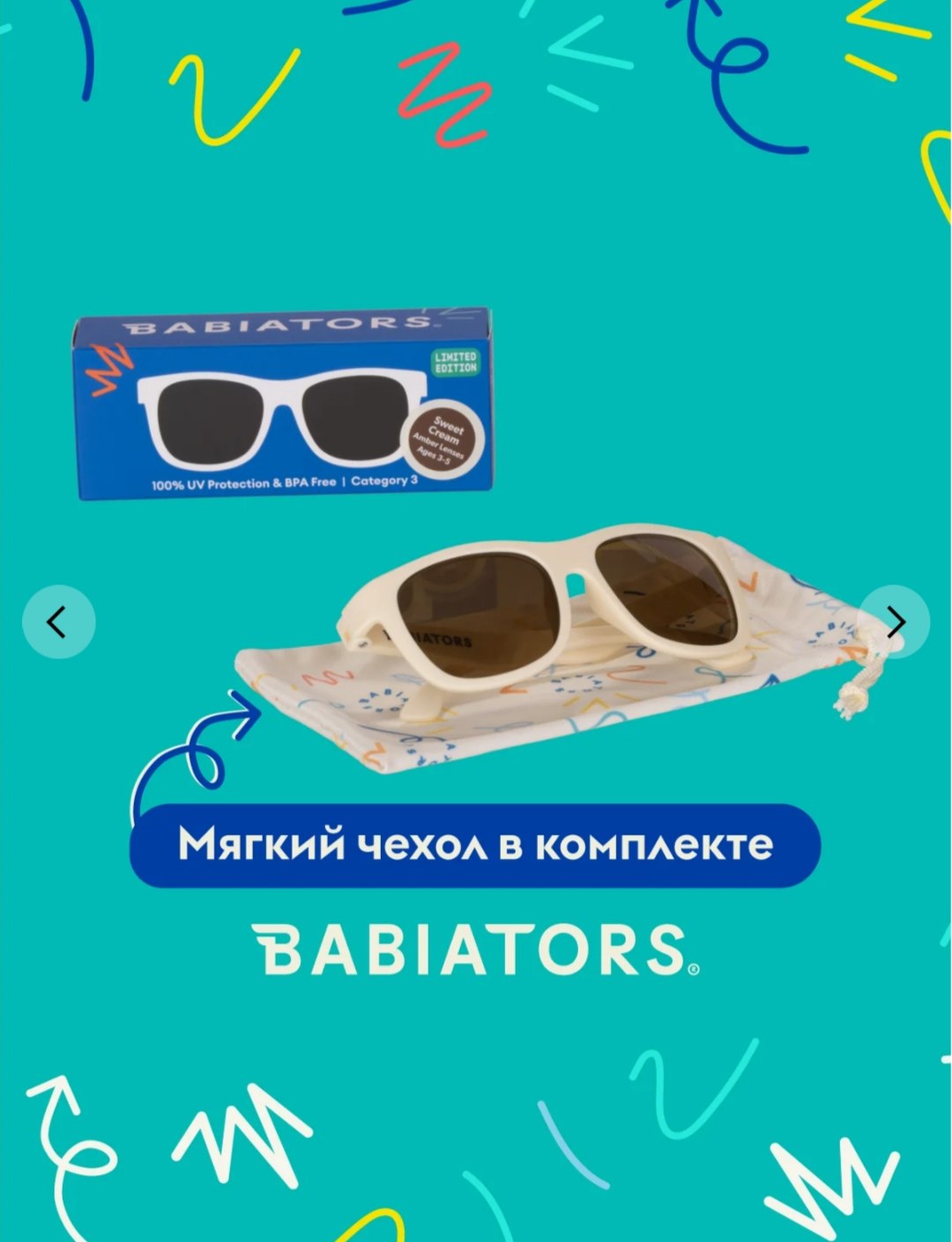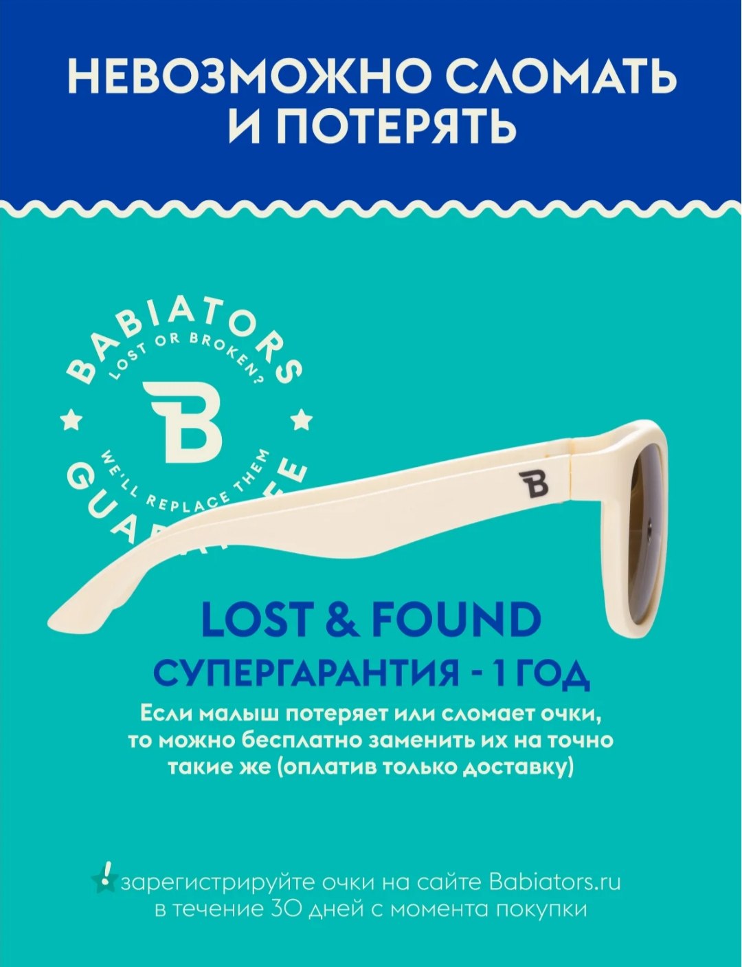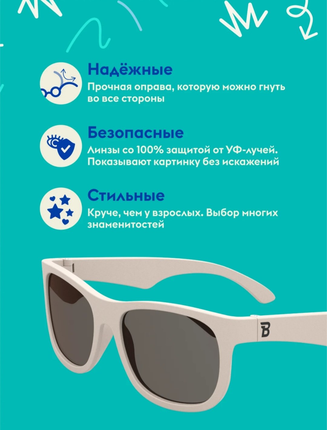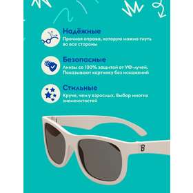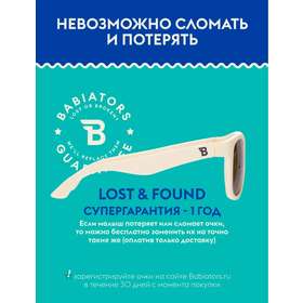 Каждая пара солнцезащитных очков Babiators для детей обеспечивает 100% защиту от UVA и UVB. Прочные линзы высшего качества не подведут в самых сложных переделках. Будьте уверены, что очки Babiators созданы безопасными, прочными и классными, так что вы и ваш маленький лётчик можете приступать к своим приключениям!