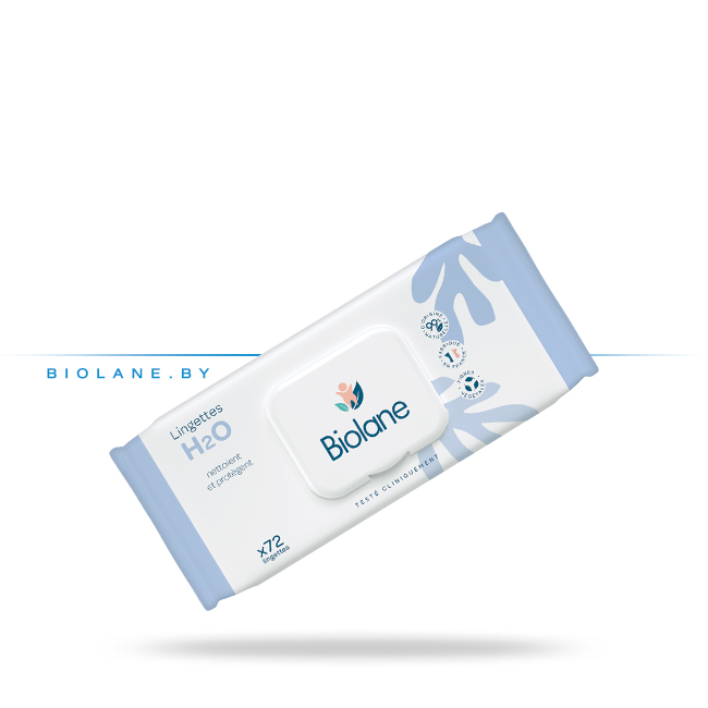 Пропитаны очищающим лосьоном БИОЛАН H2O. Содержат касторовое масло и Hydra-Bleine-комплекс биологически активных веществ на основе масла ростков пшеницы. Обладают физиологическим уровнем p-H. Сохраняют естественный баланс кожи. Деликатно освежают и дезодорируют кожу младенца. Не содержат спирта. Салфетки будут незаменимы в ситуации, когда под рукой нет воды и мыла.