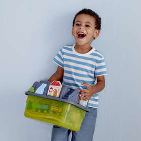 • удобно хранить, так как поставляется в пластиковой коробке, которая затем превращается в часть железнодорожного полотна