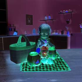 РЕАЛИСТИЧНЫЙ НАБОР ДЛЯ ПИКНИКА: включает в себя одну тканевую корзину, одну салфетку для пикника, три бутылки напитков, две клубники, два куска хлеба, один лист салата, один ломтик помидора и один кусочек сыра, из которых можно приготовить бутерброд.