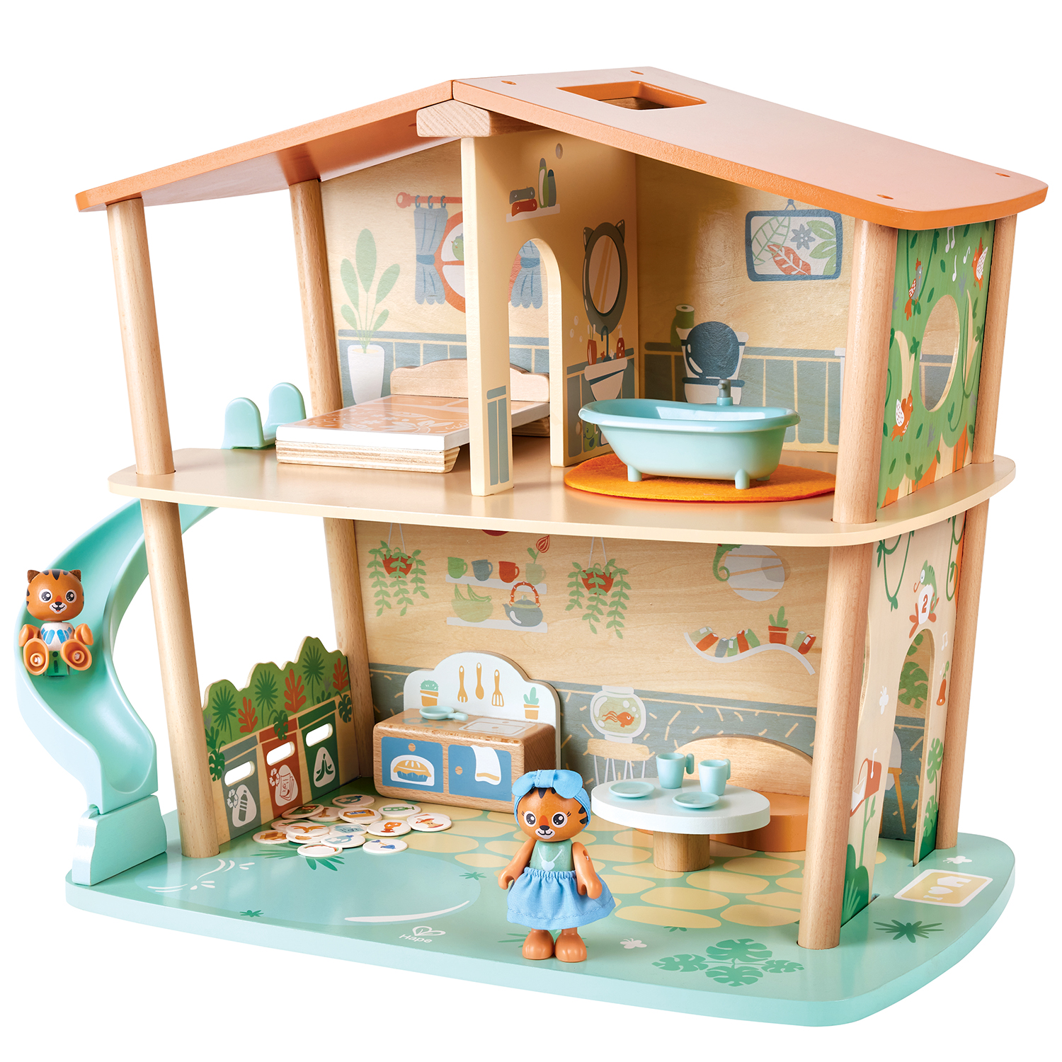 Hape Кукольный домик "Дом в джунглях семьи тигров" с фигурками и мебелью в наборе E3412_HP