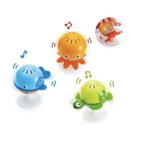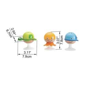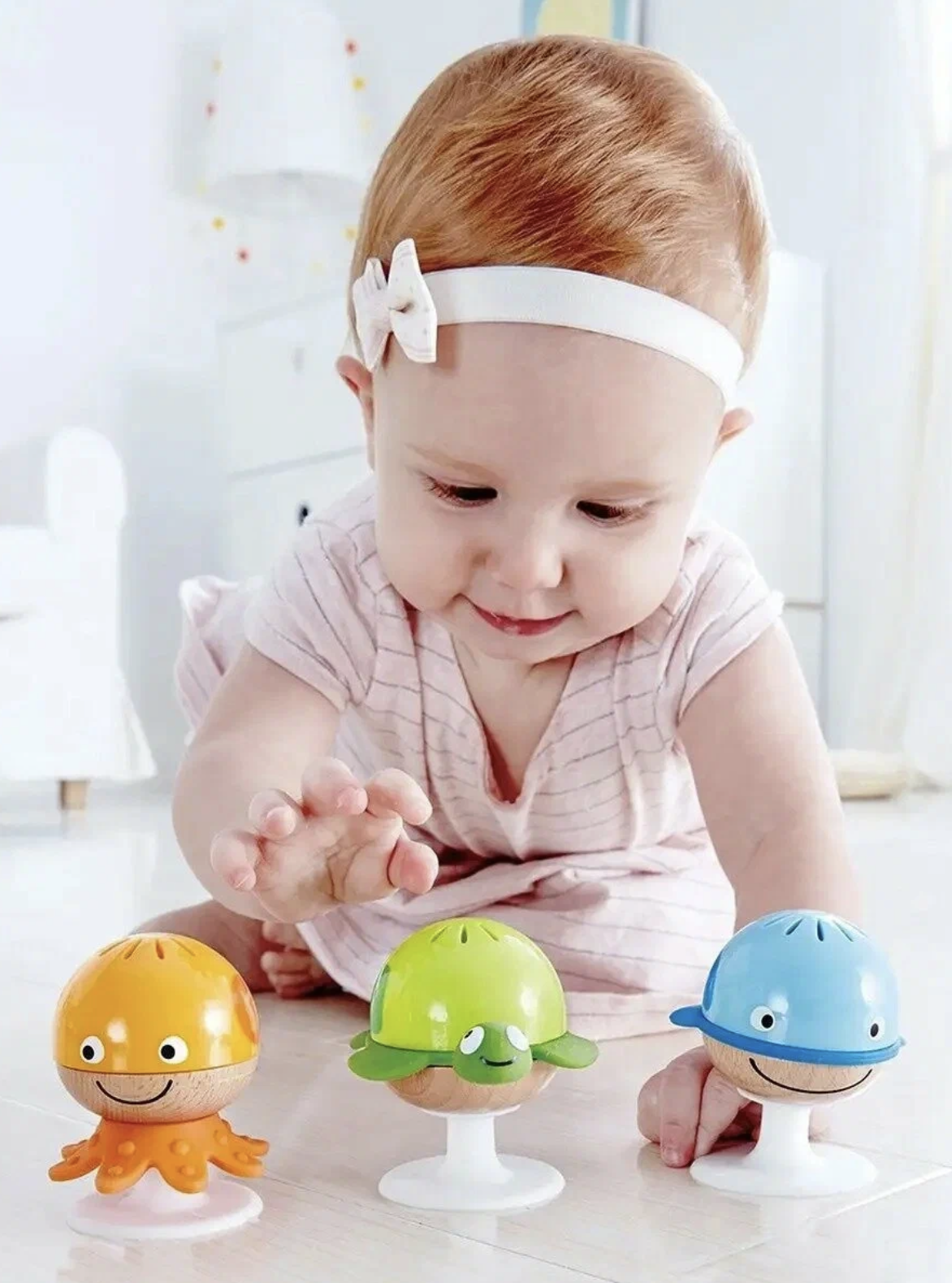 • Прочные присоски: Каждая погремушка имеет прочную присоску, которая прикрепляет ее к гладким поверхностям, предотвращая опрокидывание игрушки. Играть можно где угодно и когда угодно!