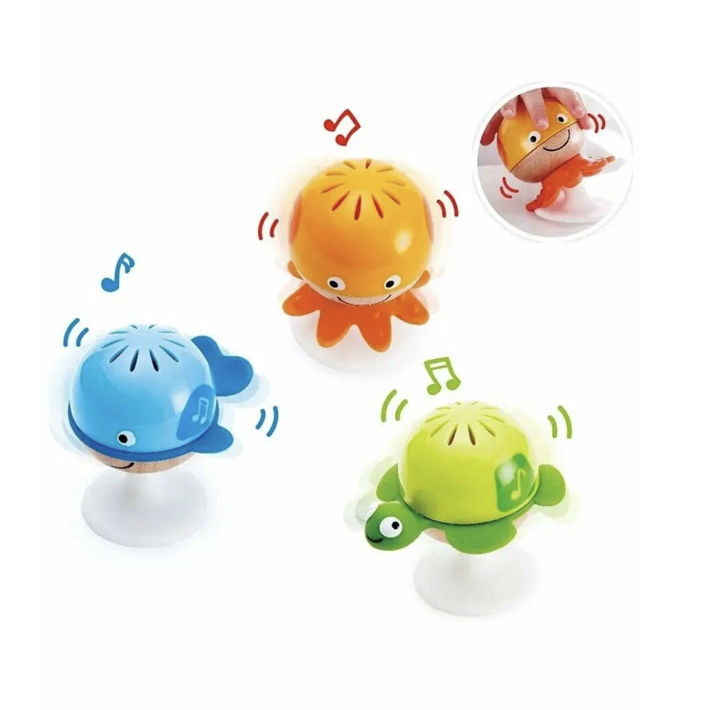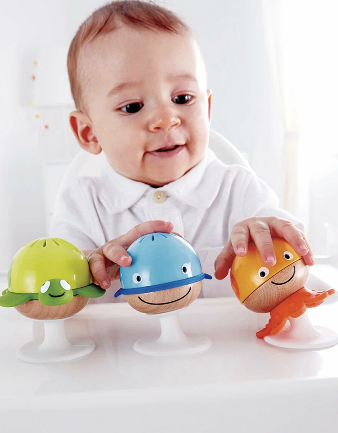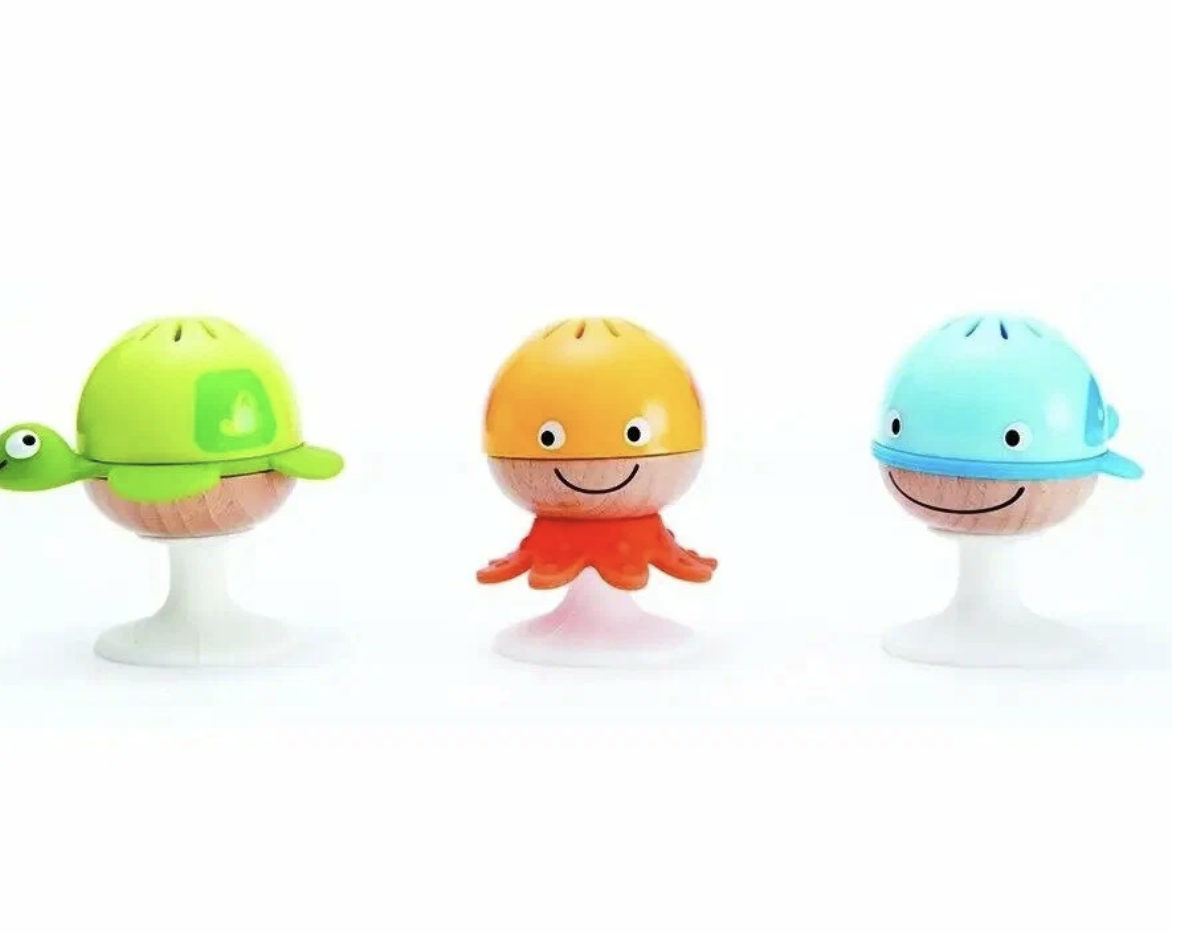 • ТРИ дружных морских существа: набор детской погремушки состоит из трех милых и красочных морских существ. Вашему малышу будет очень весело играть с черепахой, осьминогом и китом.