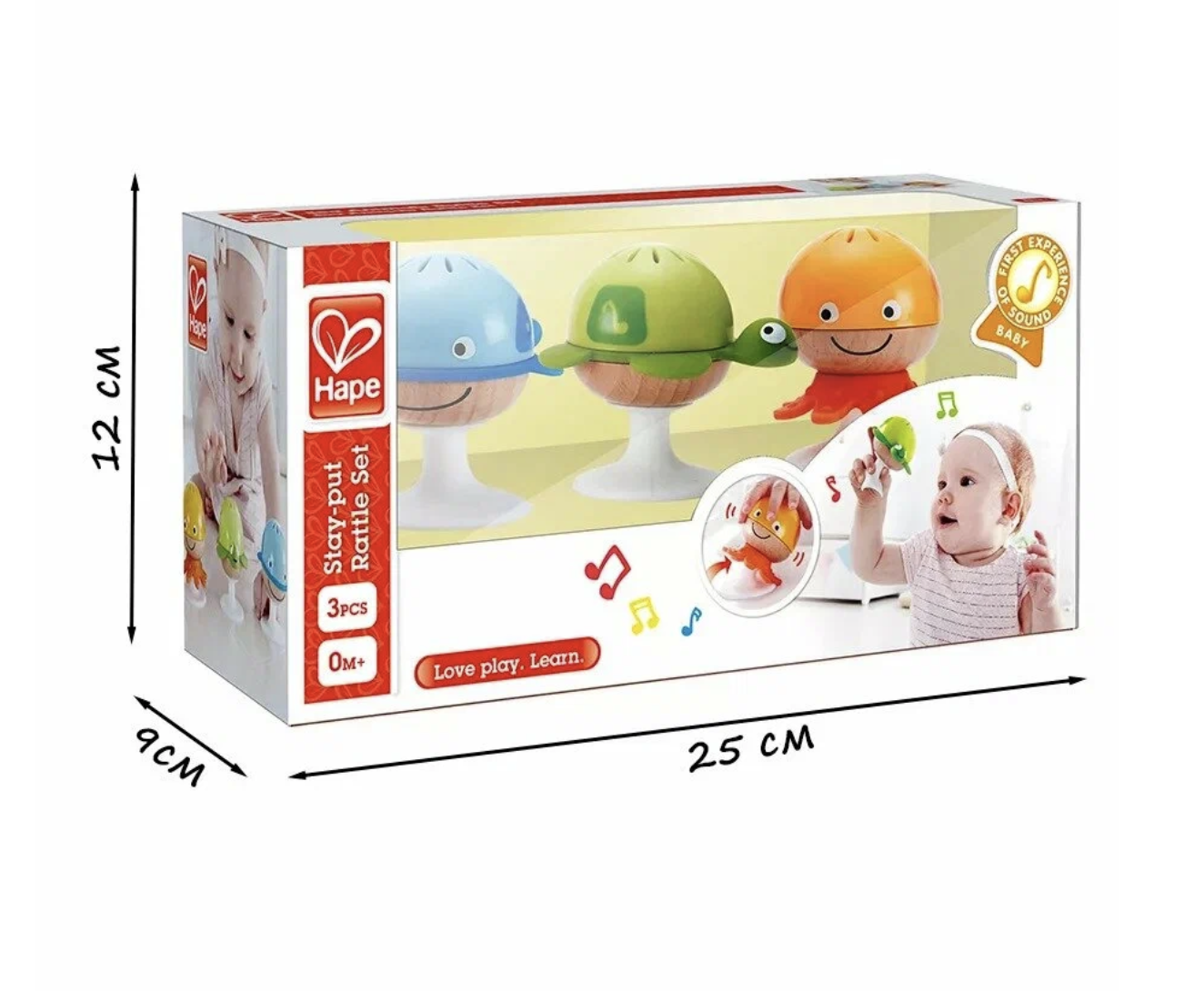 Набор погремушек Hape очарует вашего малыша разнообразными звуками, яркими цветами и подводными животными. Более того, с их удобными присосками играть можно где угодно и когда угодно! Продуманно разработанные детские игрушки стимулируют чувства ребенка и побуждают к открытиям. Позвольте вашему малышу немного изучить свою геометрическую погремушку, позвольте ему улучшить свои навыки крупной моторики и стимулировать слух, пока он трясет погремушкой. Продукция Hape разработана для поощрения и стимулирования детей на всех этапах развития. Каждый раз, когда ваш ребенок трясет погремушкой, она будет издавать звук, и по мере того, как ваш ребенок начнет это понимать, его уверенность в себе улучшится, и он попытается применить ее в других областях своей напряженной маленькой жизни.