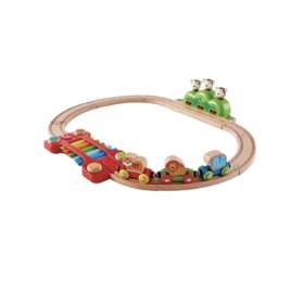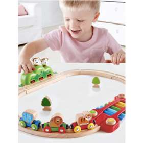Железнодорожный набор совместим с большинством деревянных элементов из других железнодорожных конструкторов Hape.