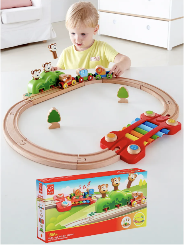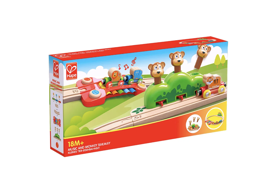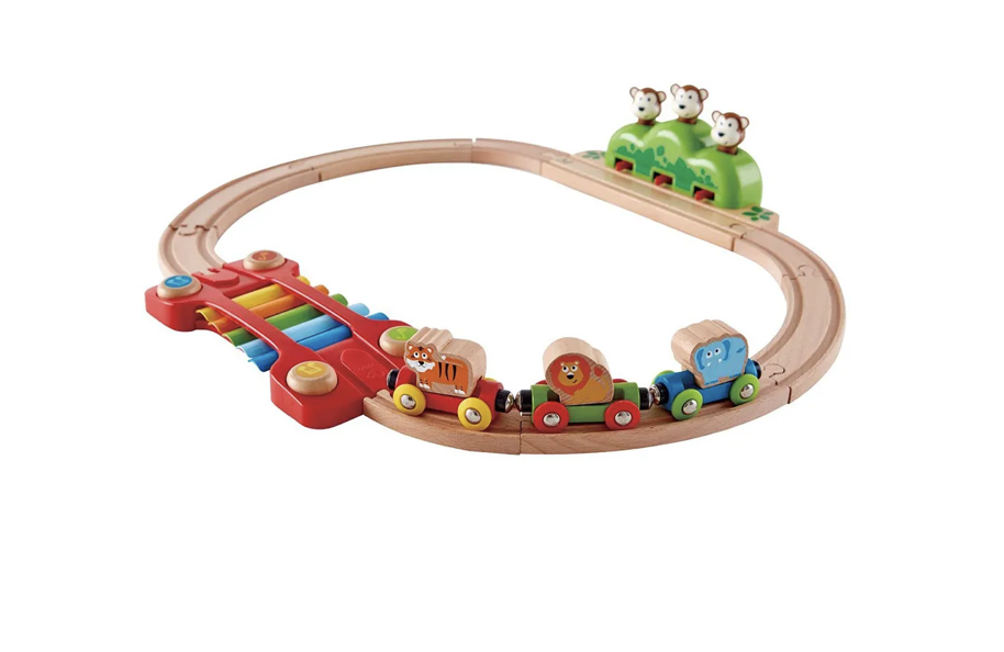 Дизайн данного набора включает в себя два интерактивных элементаксилофон и кусты с обезьянками, которые выпрыгивают из своего укрытия, когда поезд проезжает мимо них.