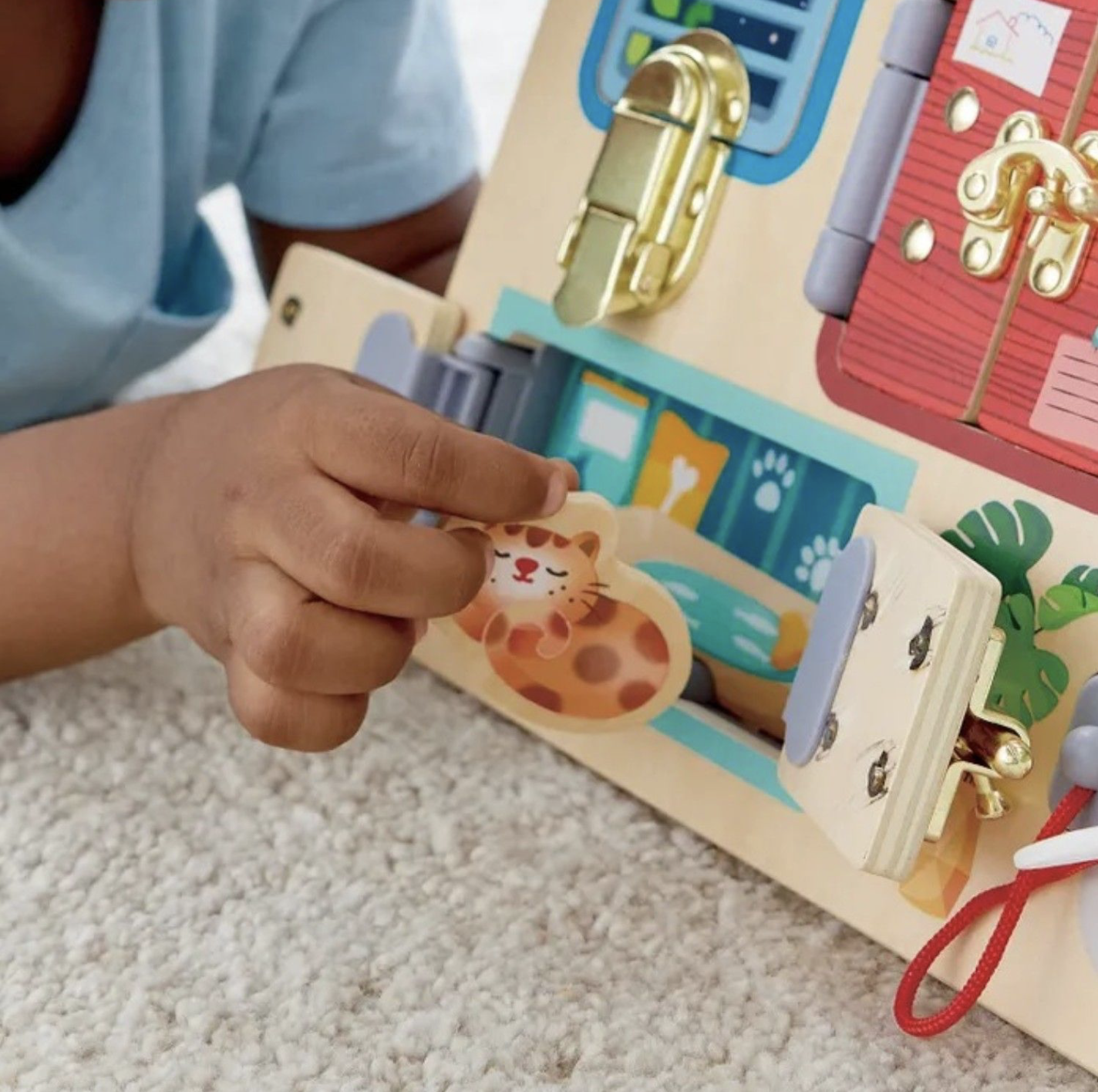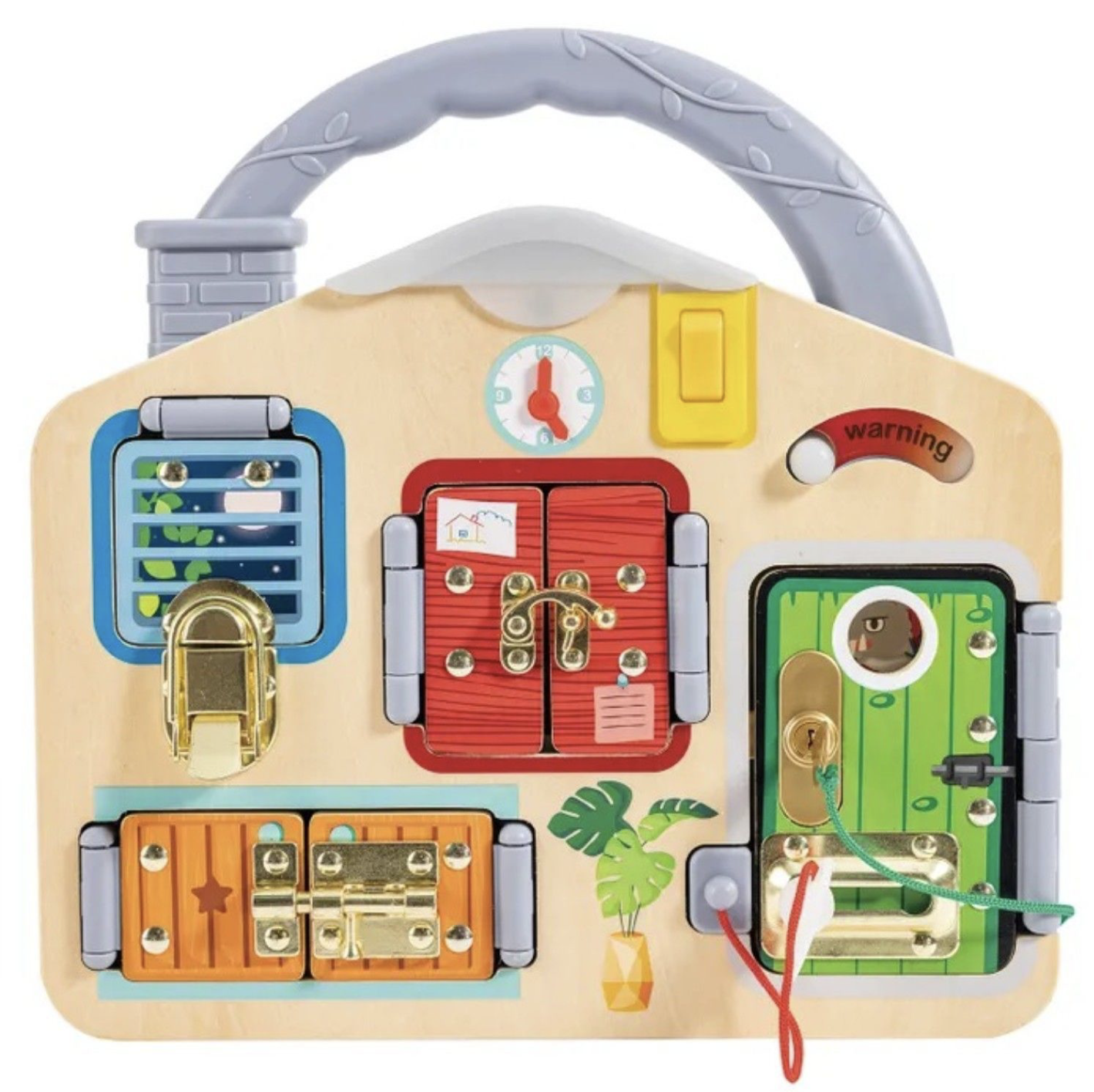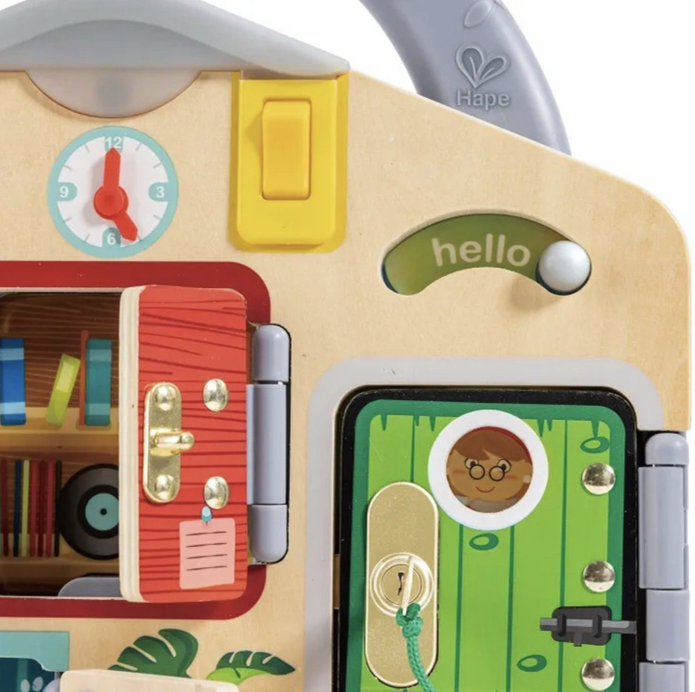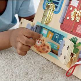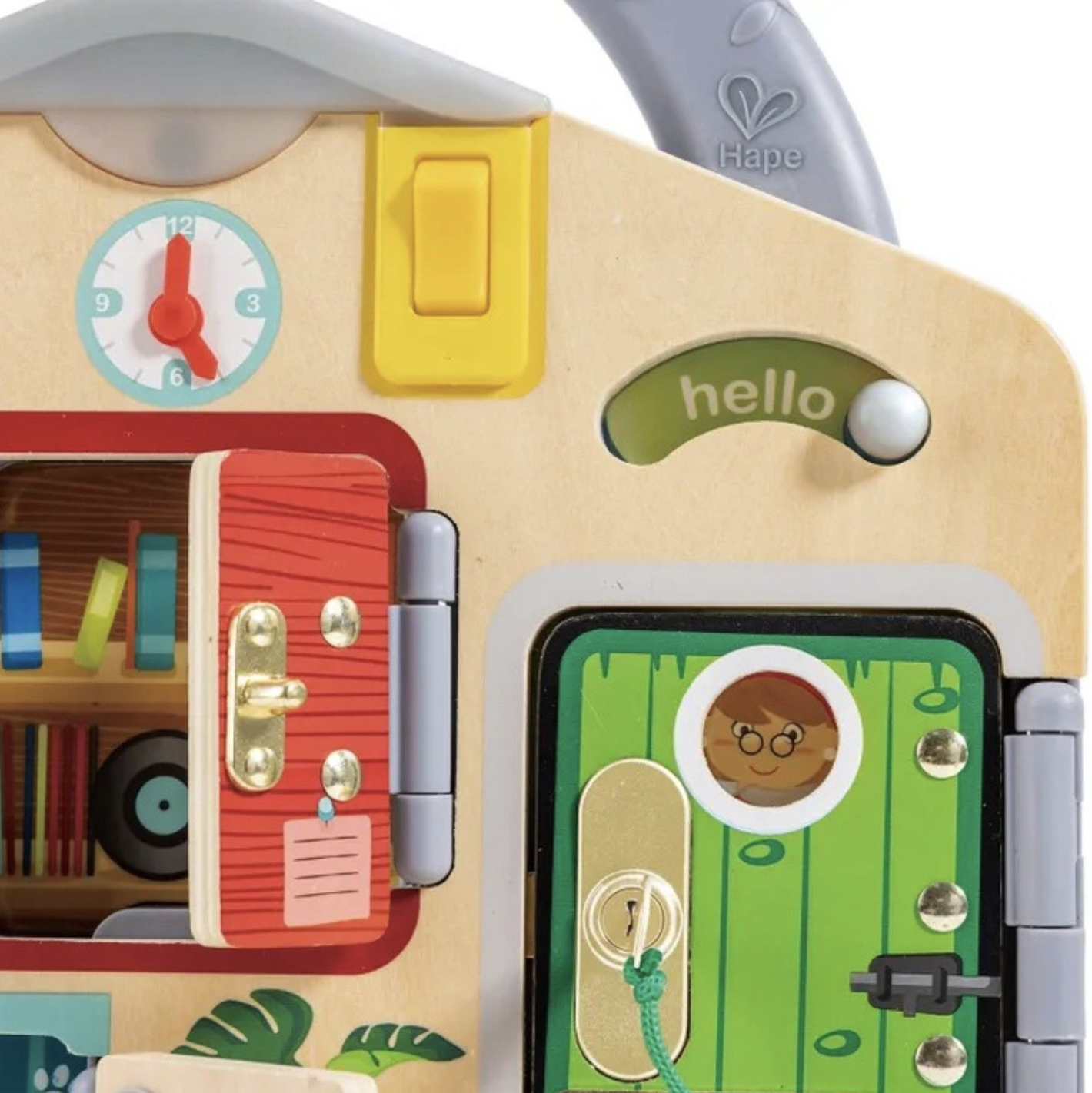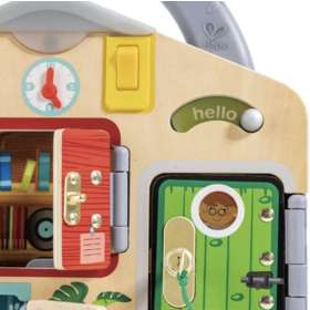 Бизиборд " Тайные комнаты "  от бренда Hape - это яркая и веселая игрушка с потайными замками, за которыми прячутся разнообразные зверьки, которая поможет вашему ребенку развивать навыки распознавания цветов и образов,  мелкой моторики, поскольку для разблокировки замков требуются точные движения пальцев, а также настойчивость  и решимость, поскольку они учатся не сдаваться легко, быть настойчивым в своих попытках.