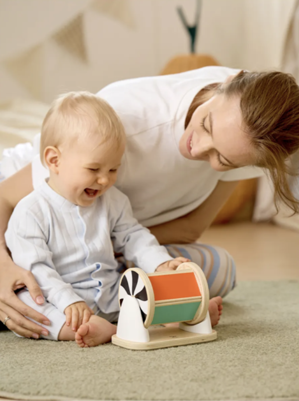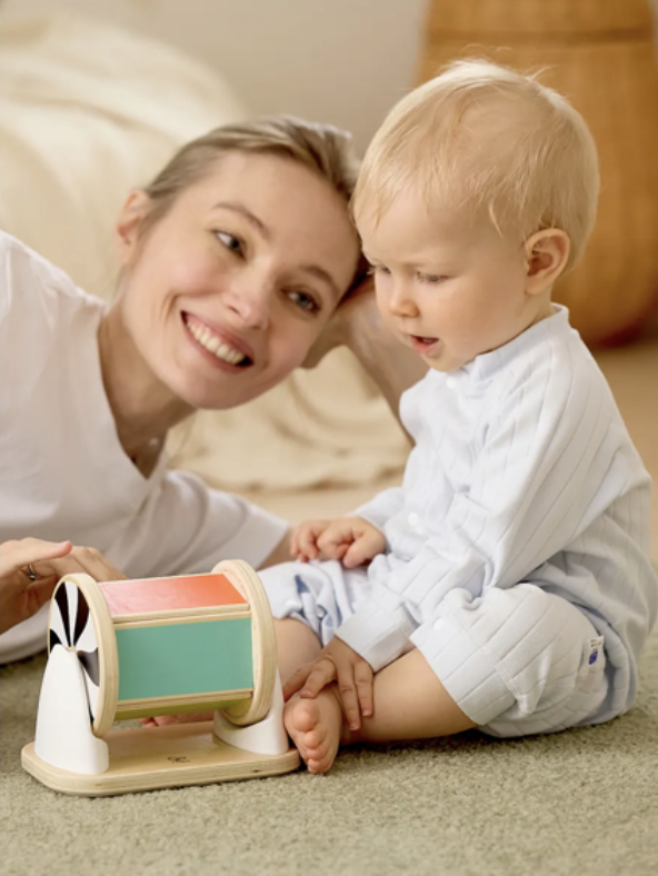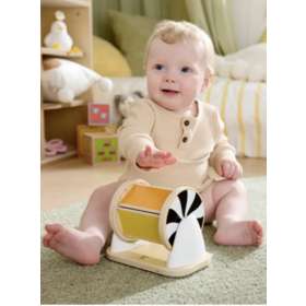 • Цветные узоры и контрастные черно-белые рисунки на барабане привлекают внимание и способствуют формированию визуального восприятия.