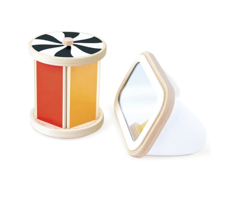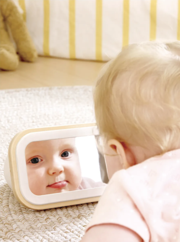 • Основание с зеркалом служит идеальным инструментом для самоисследования ребенком собственного отражения и развивает пространственное восприятие.