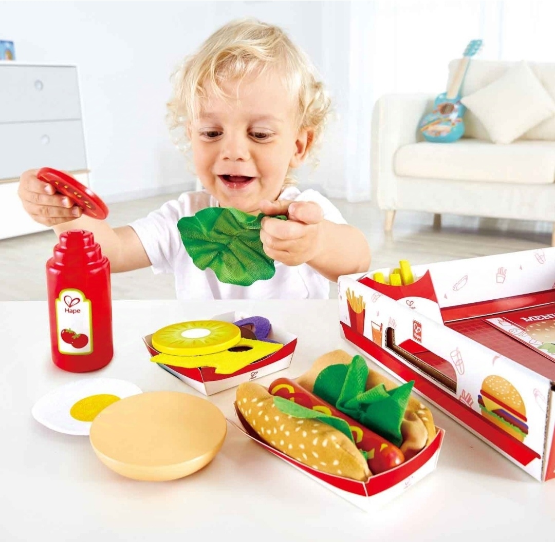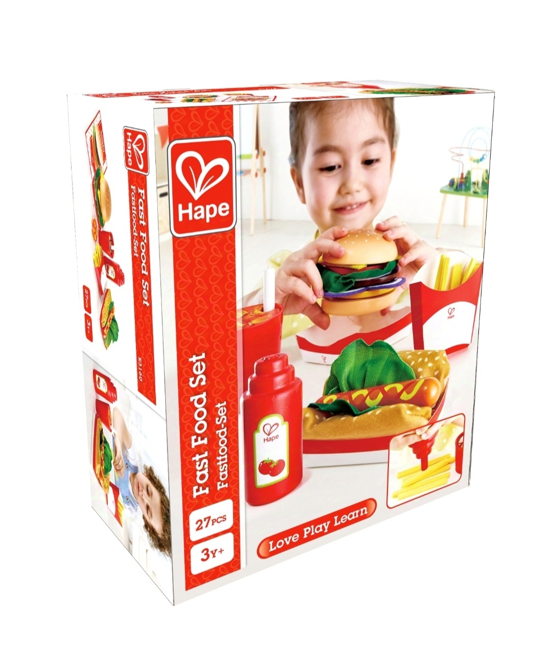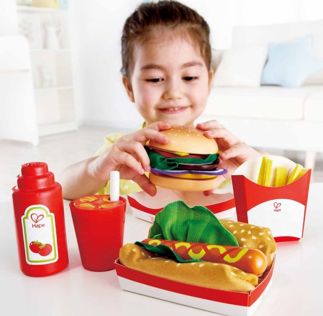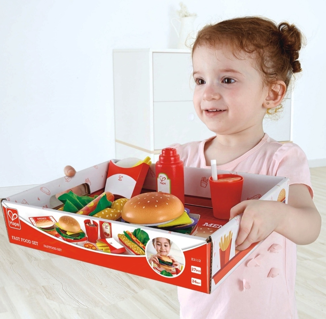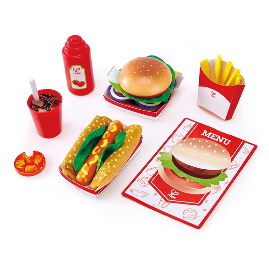 Удивительный набор из 27 предметов включает в себя фаст-фуд, который вы найдете в настоящем ресторане быстрого питания.