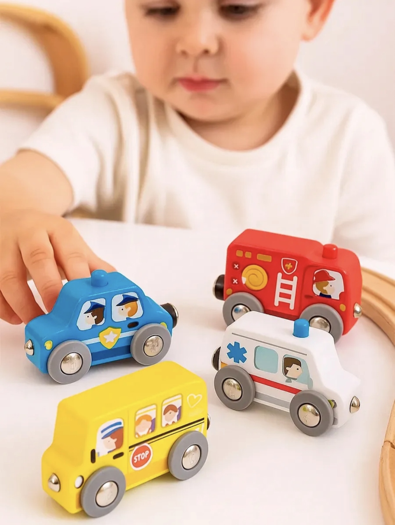 Познакомьте своего ребёнка с миром транспорта и профессий, используя этот увлекательный набор игрушечных автомобилей четырёх видов. Четыре ярких машинки разного цвета помогут развить понимание функций различных служб экстренной помощи и транспортных средств, делая обучение интересным и занимательным процессом.
