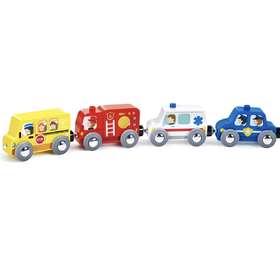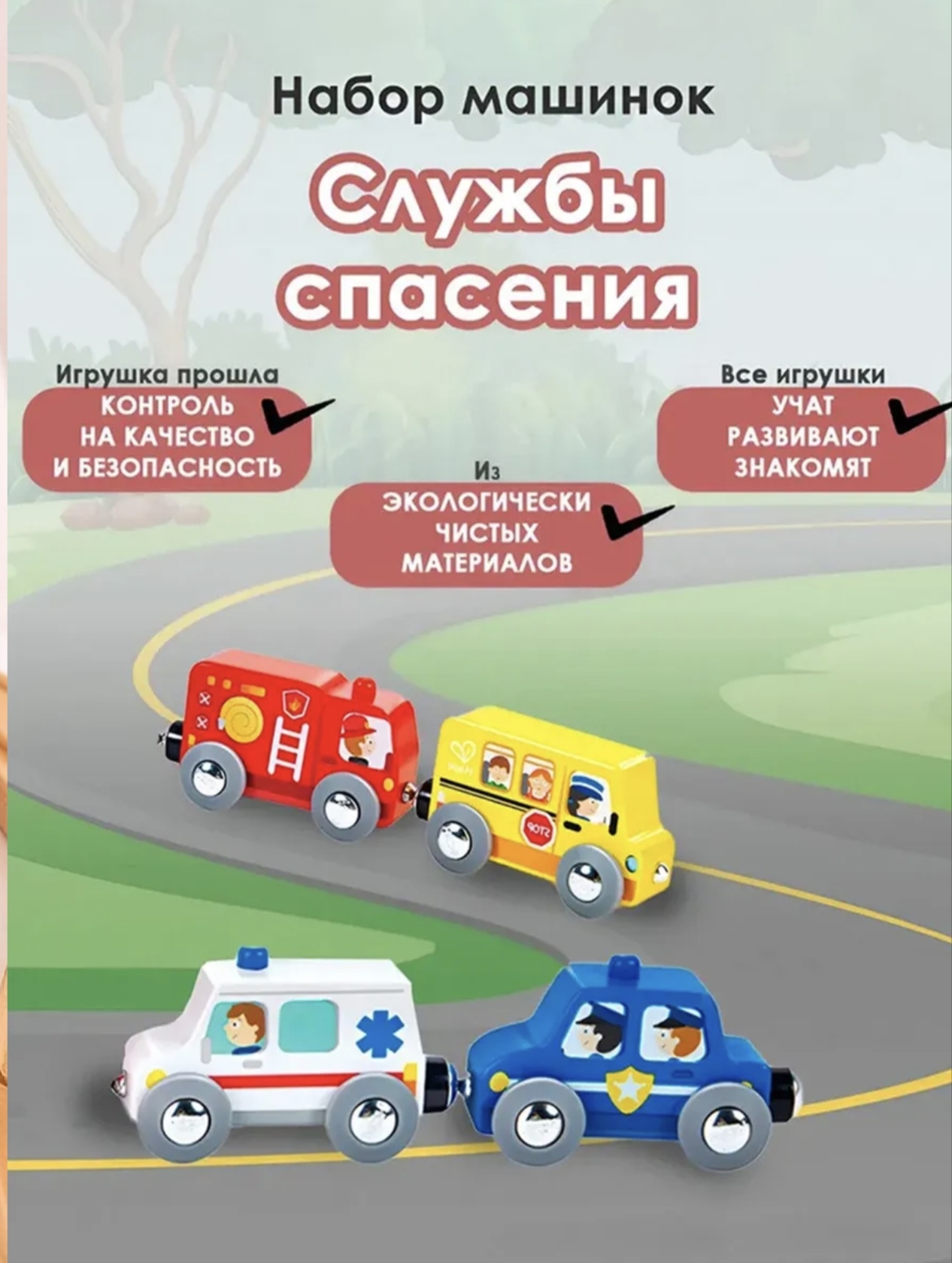 Комплектация: 4 машинки — школьный автобус, машина скорой помощи, полицейская машина, пожарная машина.