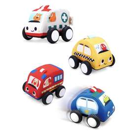 • Набор включает четыре реалистичные мягкие машинки — пожарная машина, скорая помощь, полицейская машина и такси. Каждая украшена изображениями животных, помогая детям знакомиться с разными видами зверей.