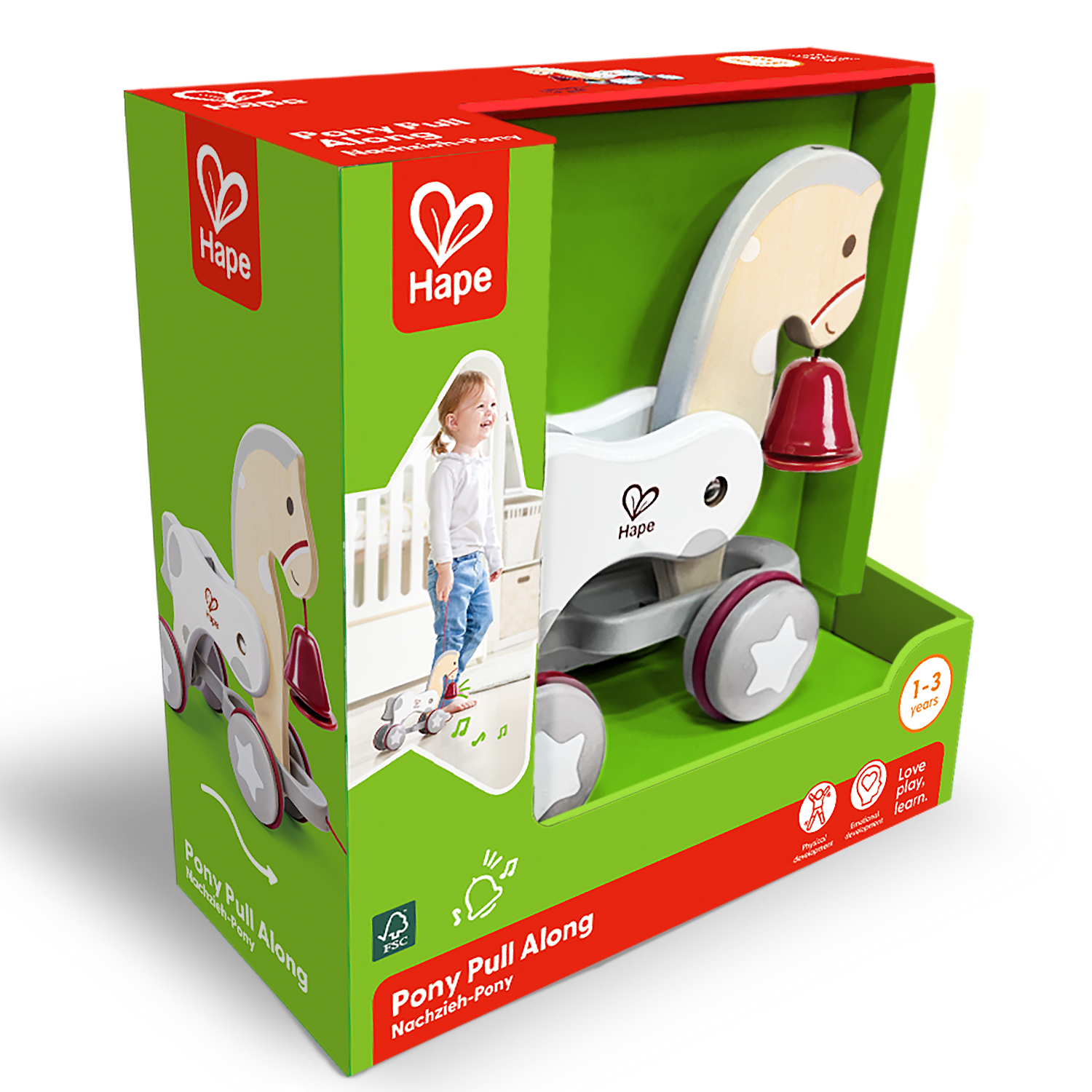 Hape Игрушка каталка для малышей Пони на веревочке E0367_HP