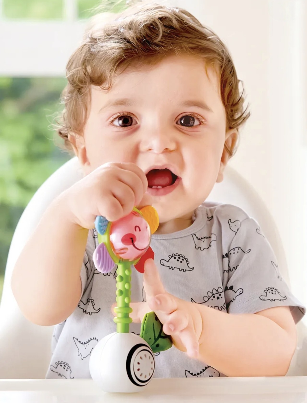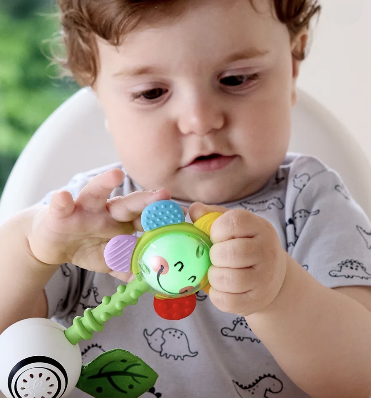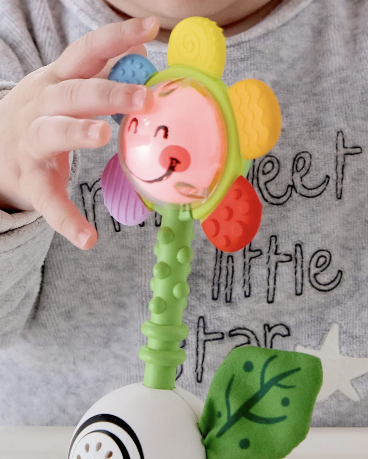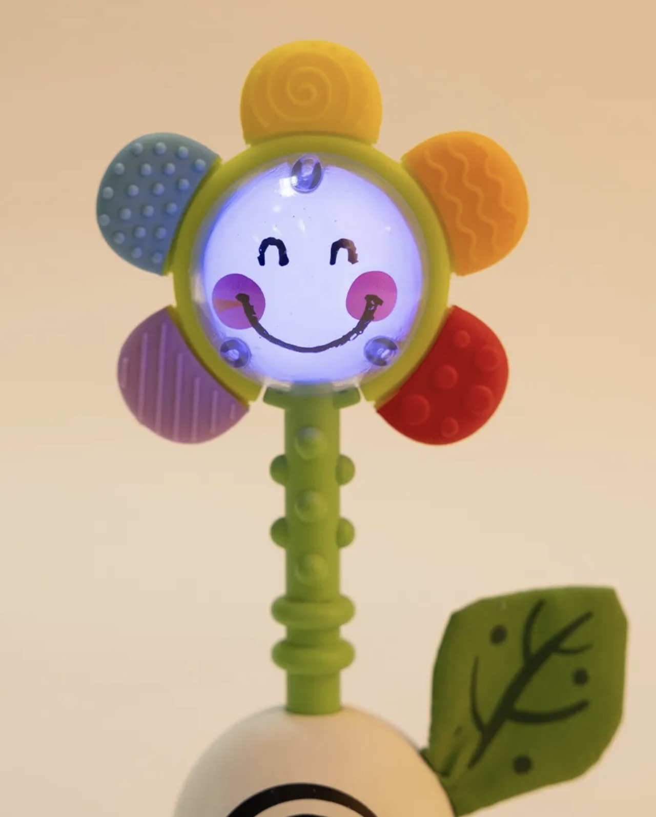 С каждым встряхиванием и прикосновением сердцевина цветка загорается яркими цветами, привлекая внимание малыша и создавая волшебную атмосферу.