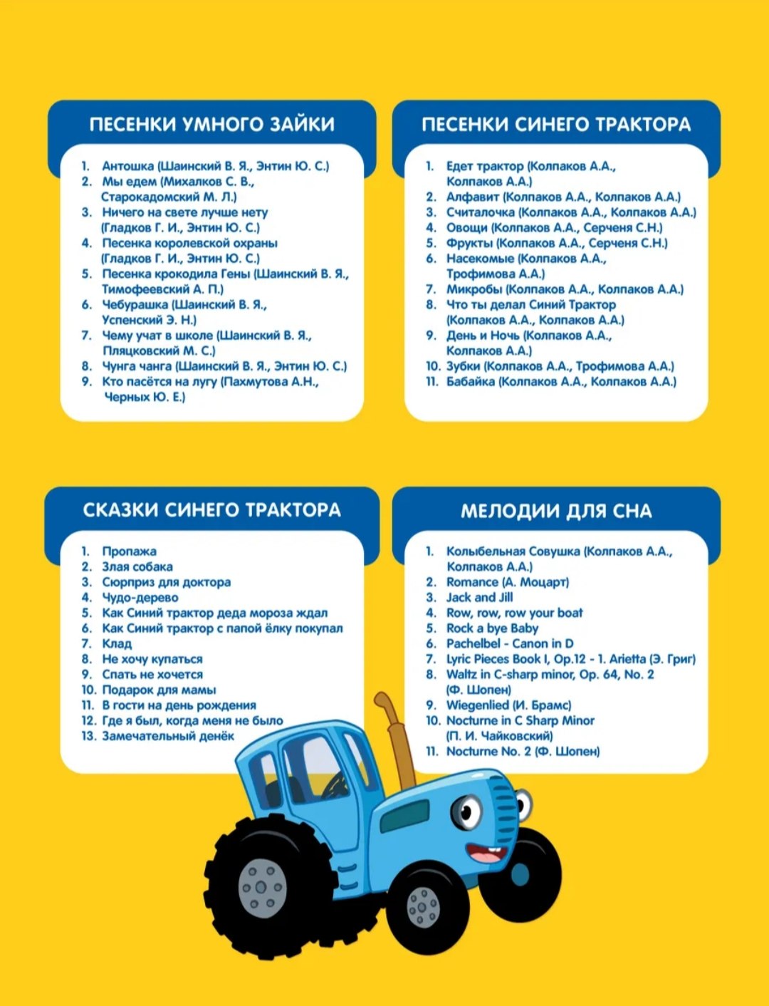 • Контент из популярного мультфильма. Пою 12 песенок-хитов и рассказываю 13 сказок из подкаста "Детство Синего трактора!