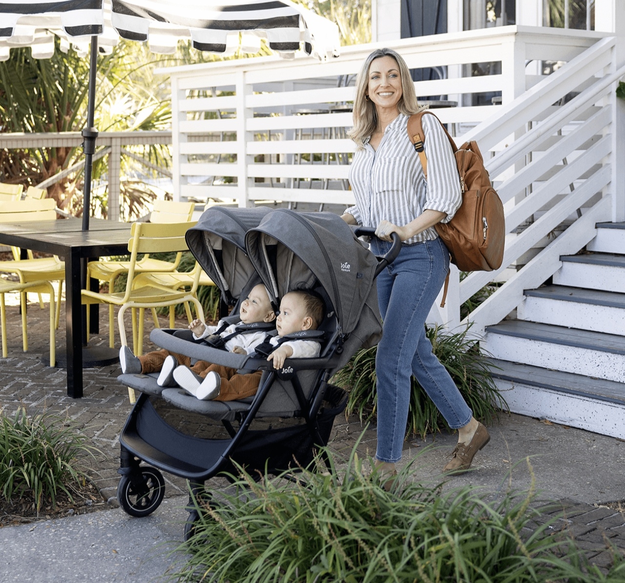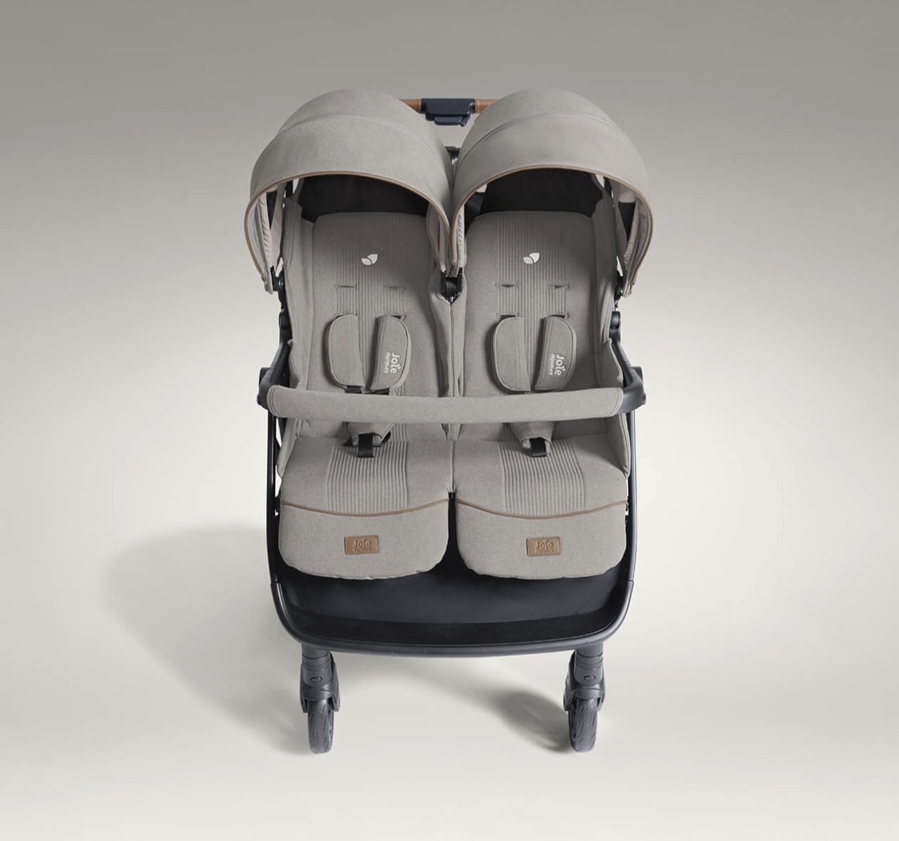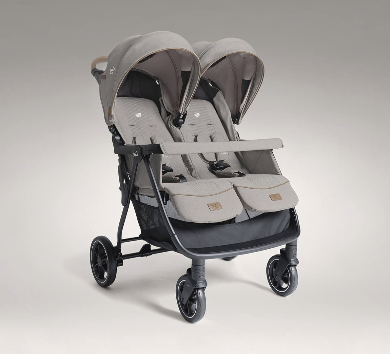 Прогулочная коляска для двойни Joie Estrella - легкая и компактная коляска для двоих детей с рождения до  22 кг (на каждое сидение). Идеальное решение для прогулок, путешествий, поездок на общественном транспорте или машине. Коляска складывается одной рукой и очень компактная. Вес коляски всего 12 кг, а ширина шасси коляски всего 72,5 см.