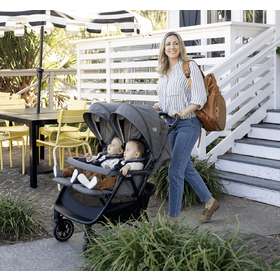 Легкий вес коляски и возможность быстро сложить коляску до компактных размеров дают родителям легкость в перемещении с двумя детьми. Несмотря на то, что коляска двойная, она смотрится очень компактно и имеет элегантный современный внешний вид. Спокойные расцветки и качественные материалы позволят наслаждаться каждой прогулкой с вашими малышами.