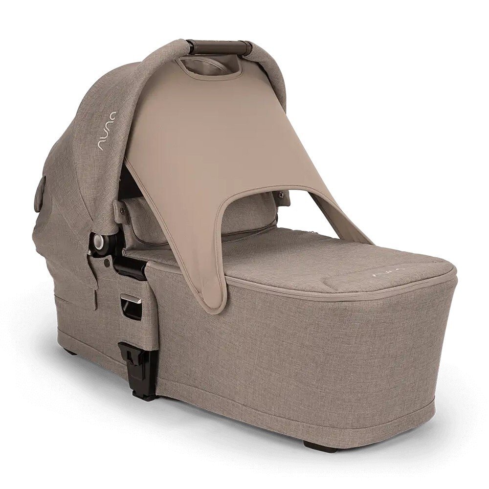 Люлька Nuna Mixx Next легко и надежно крепится к раме коляски. Салон просторной колыбели обит экологичными тканями, мягкий эргономичный матрасик способствует здоровому сну младенца. Объемный капюшон плавно и бесшумно опускается, не тревожа сон ребенка.  Благодаря встроенному в конструкцию люльки клапану малышу обеспечен дополнительный уровень защиты от непогоды. Следить за маленьким путешественником можно благодаря сетчатому смотровому окошку, которое дополнительно обеспечивает вентиляцию внутри. Накидка на люльку застегивается на молнию по всему периметру корпуса, благодаря чему вы легко сможете достать малыша из люльки. Большая люлька складывается до плоского предмета, ее можно взять с собой в путешествие и ребенок будет отдыхать с комфортом.