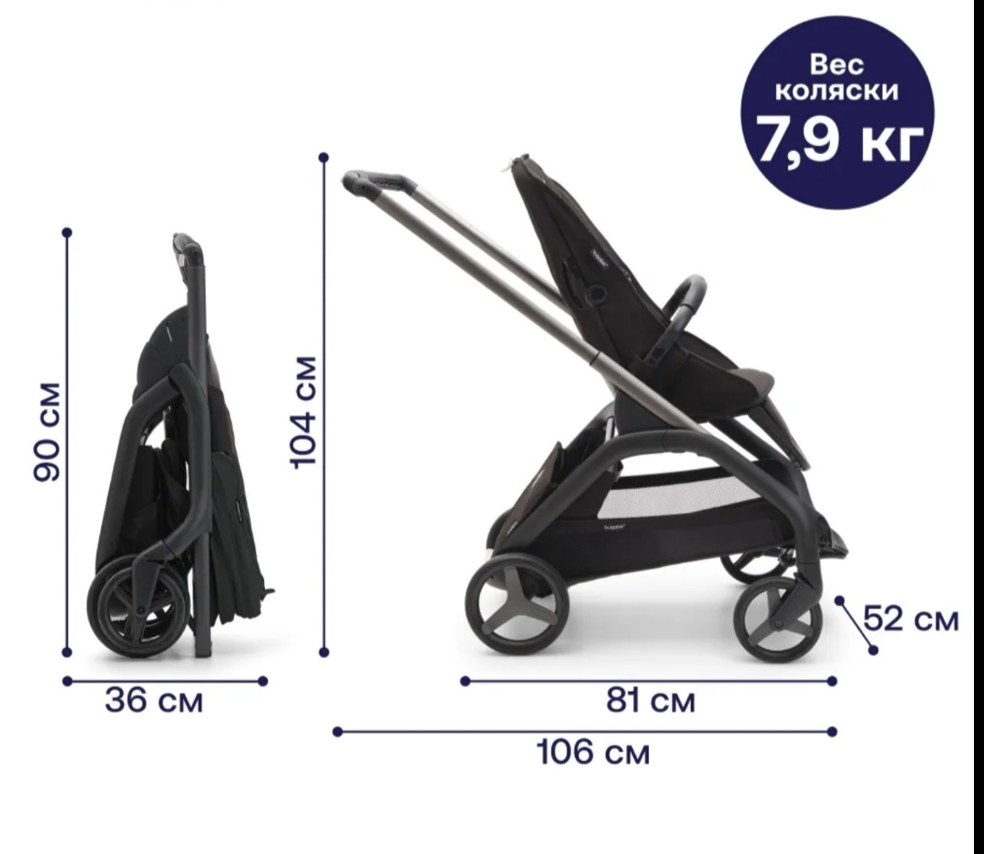 • Размеры в сложенном виде (длина х ширина х высота): 36 х 52 х 90 см