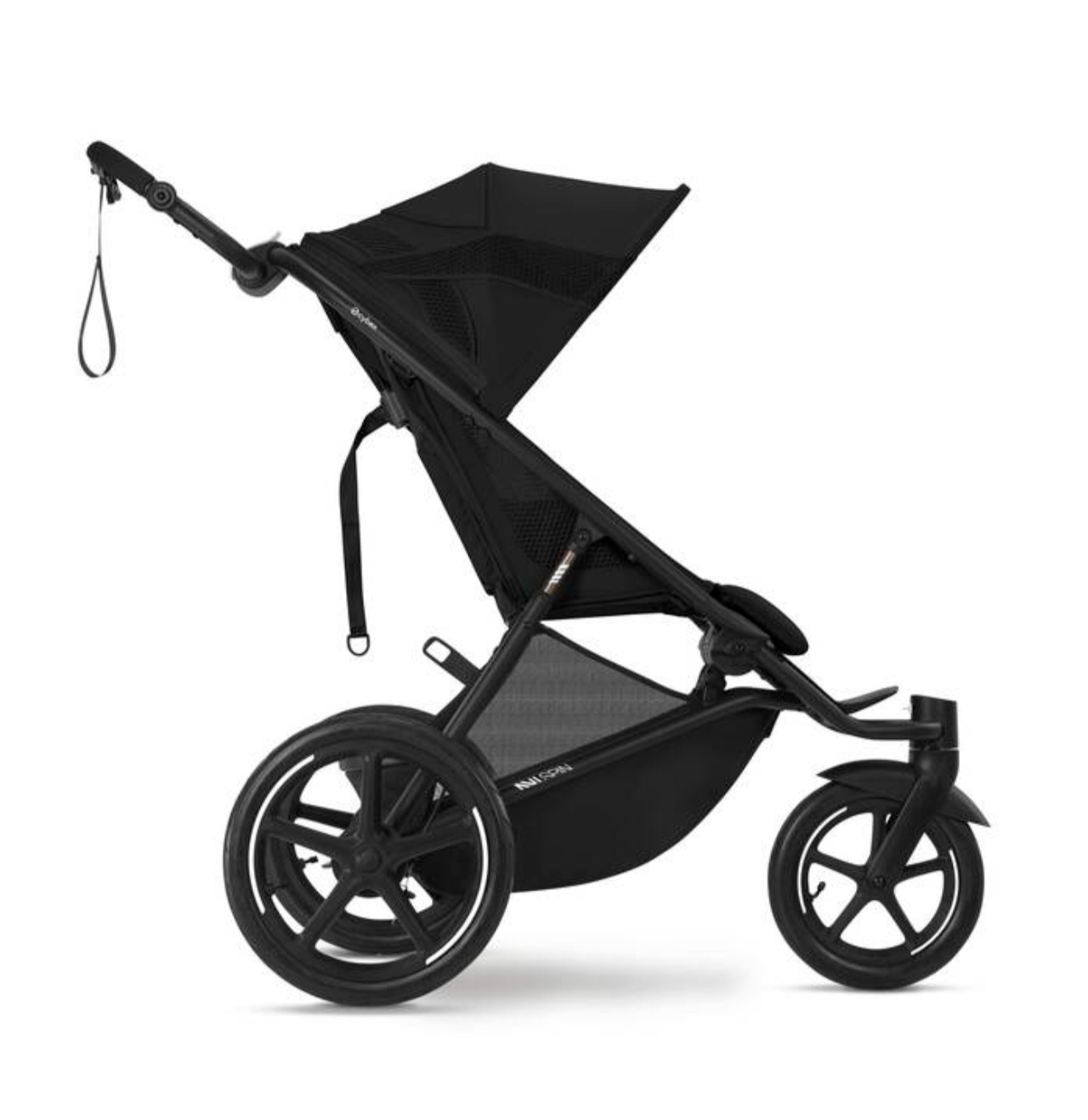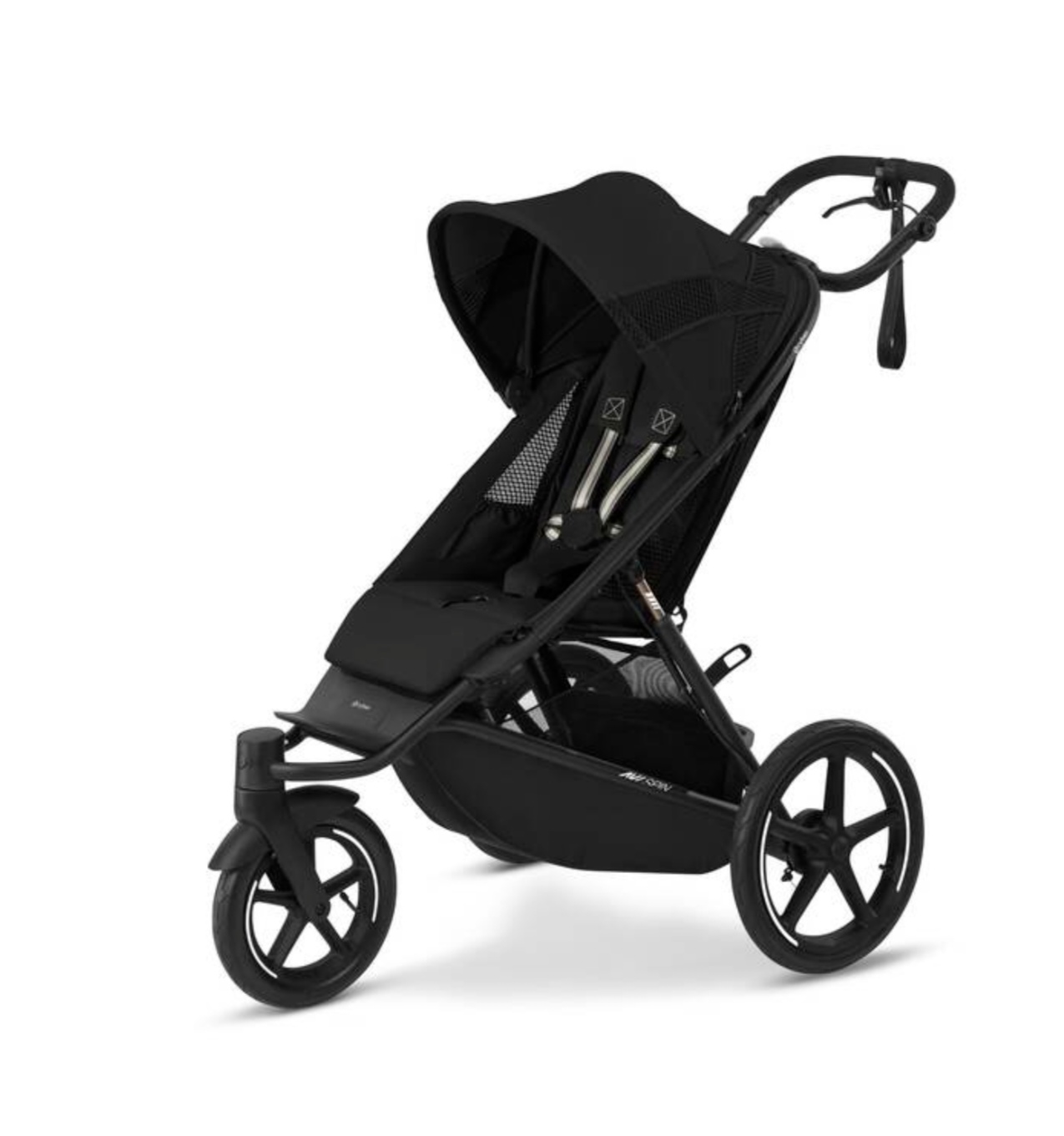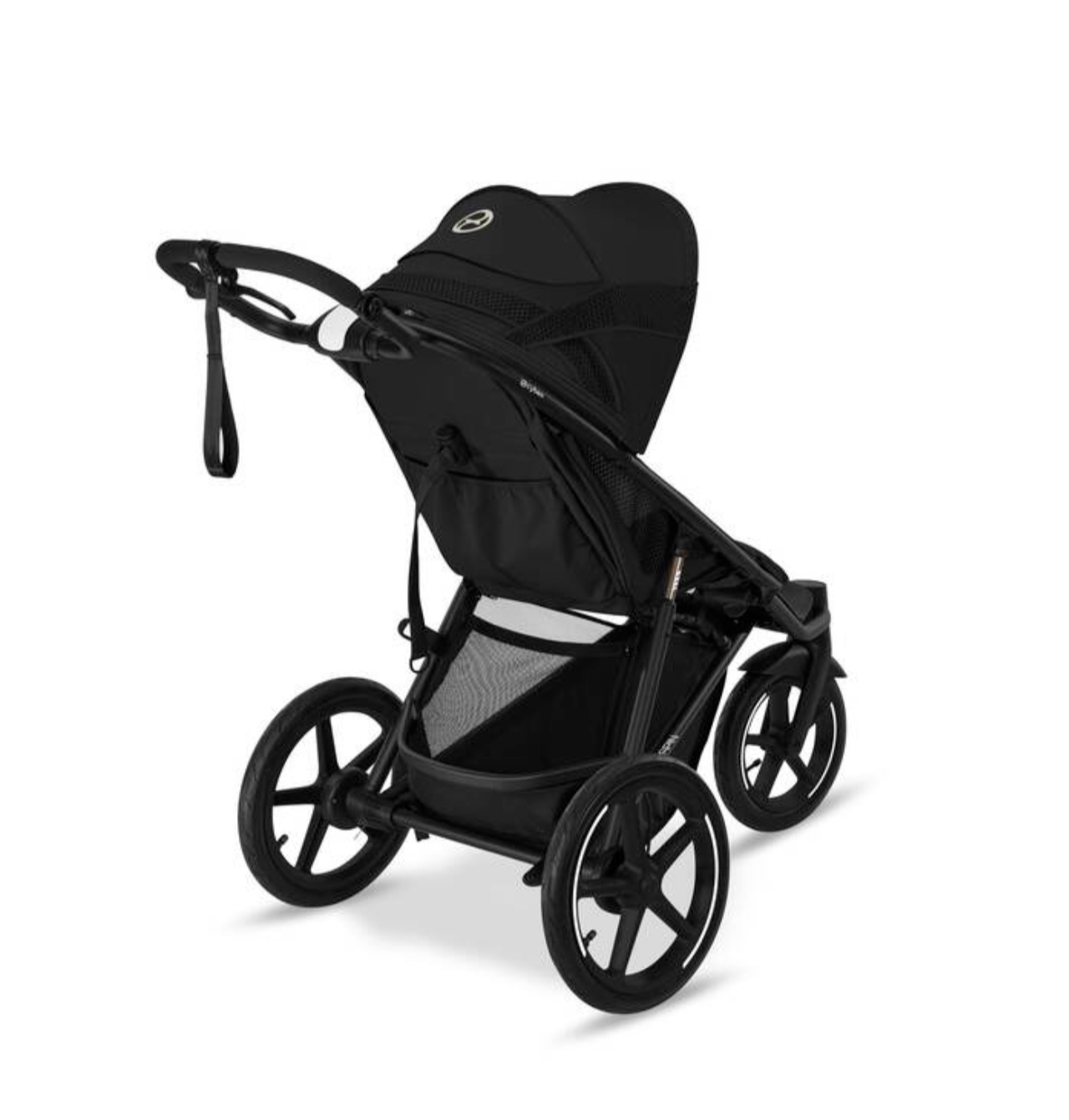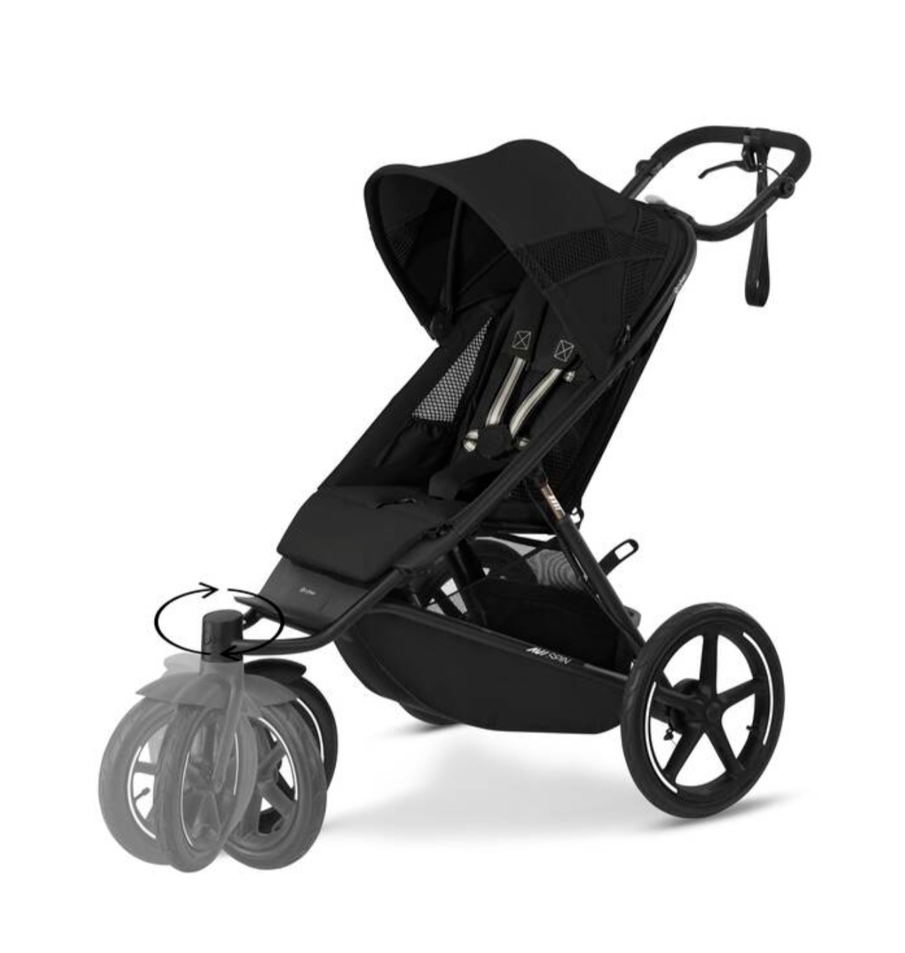 Изображение коляски CYBEX Gold Avi Spin, демонстрирующее светоотражающие кольца и швы.