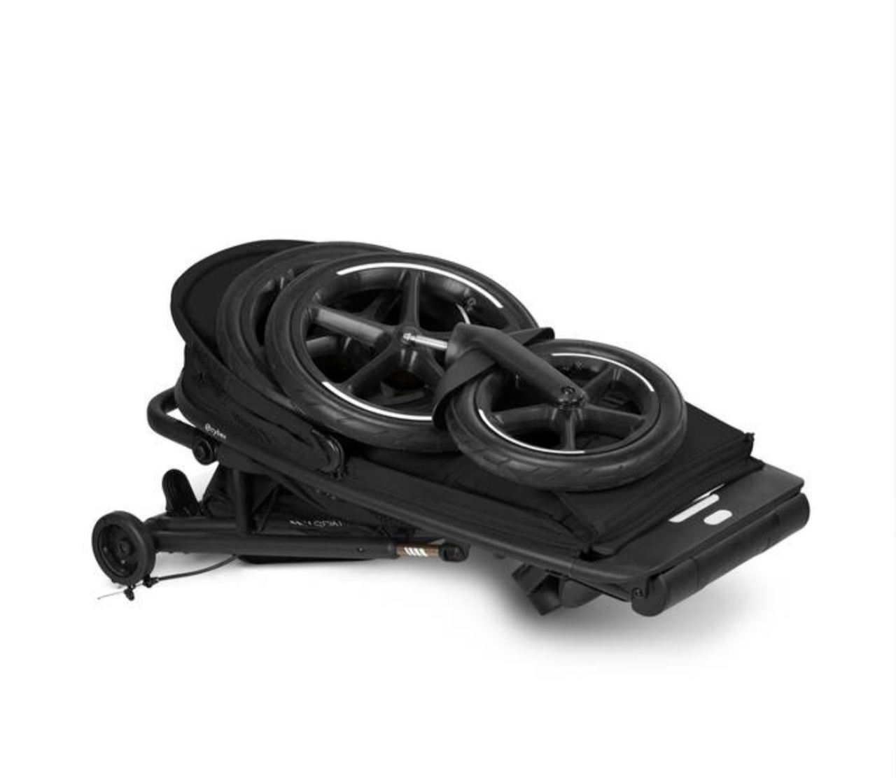 Изображение коляски CYBEX Gold Avi Spin, демонстрирующее функцию компактного складывания.