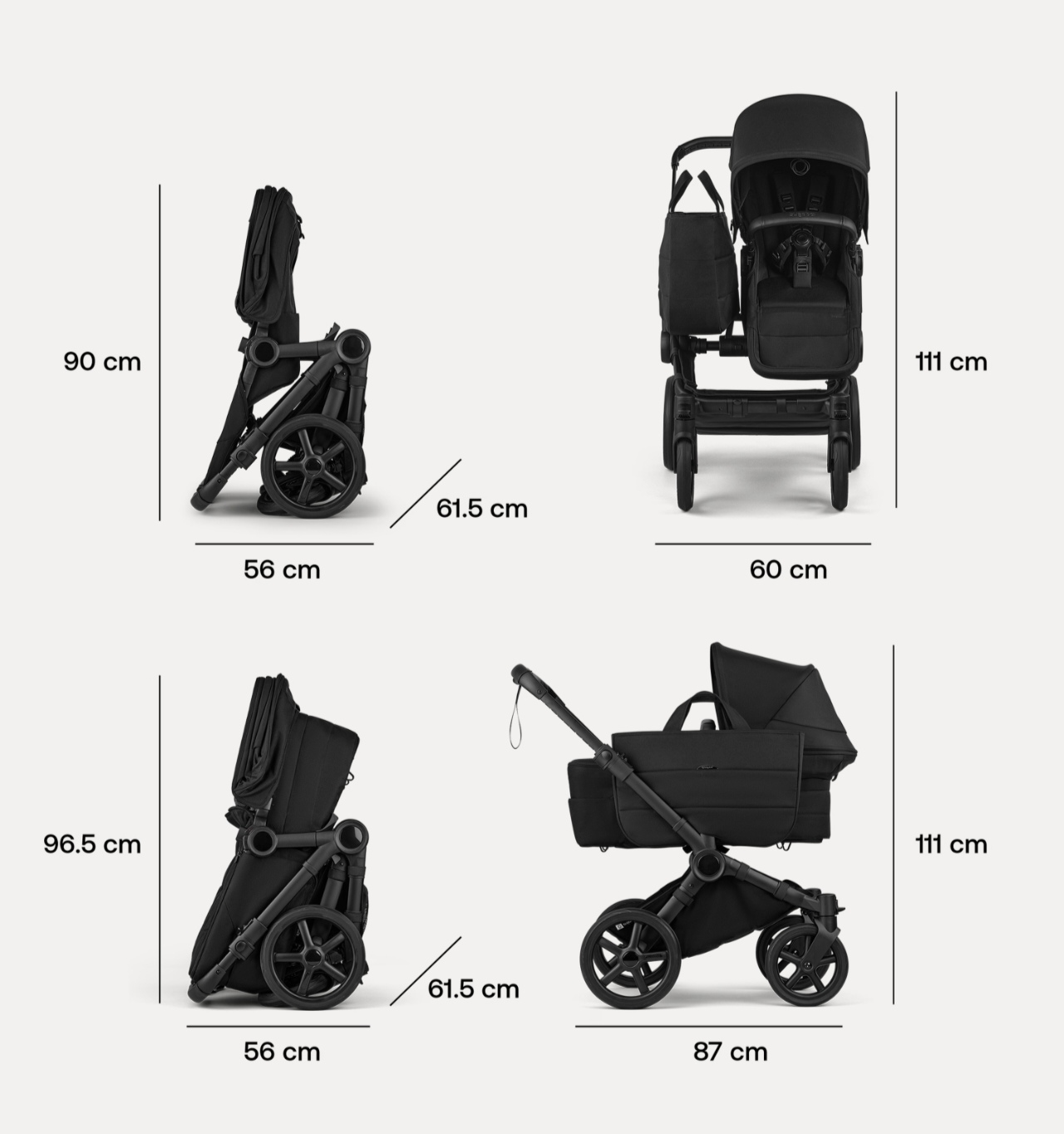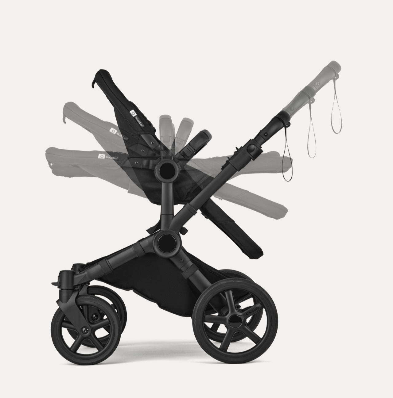 Комплектующие для вашей коляски Bugaboo Donkey 6. Включая шасси, колеса, колпаки на колеса и предварительно собранные ручки.