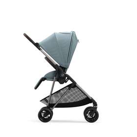 Амортизаторы на колесах делают подвеску коляски Cybex Melio мягкой и позволяют плавно преодолевать любые неровности на дорогах. Шасси коляски, благодаря инновационной разработке, очень легко и компактно складывается, в сложенном виде шасси может самостоятельно стоять в вертикальном положении. Нижняя корзина для покупок, которая входит в комплект коляски, вместительная и позволит совершать покупки во время прогулок.