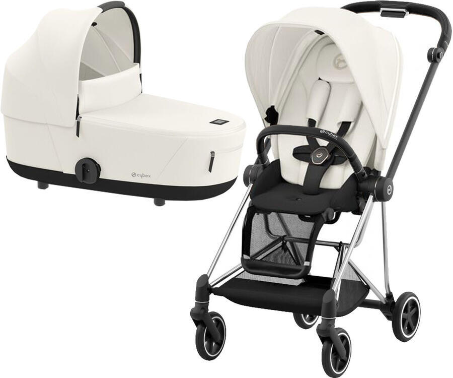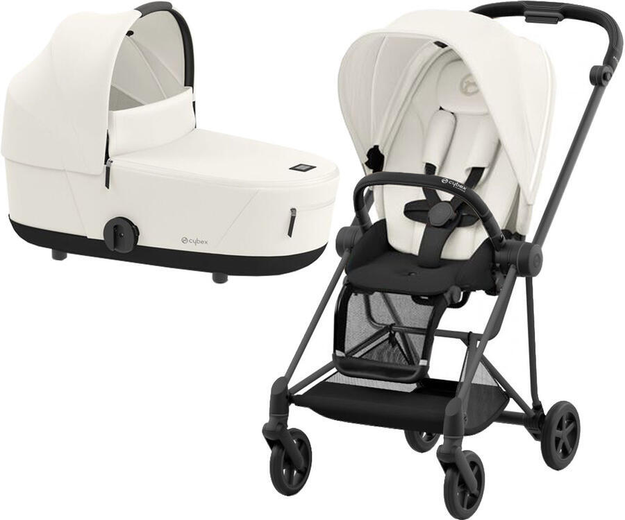 Cybex Mios III коляска 2 в 1 комплектуется: шасси с колесами, каркас прогулочного блока с бампером, люлька, текстиль прогулочного блока, дождевик, нижняя корзина для покупок, адаптеры для установки автокресла на шасси.
