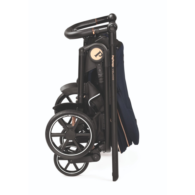 Легкая, быстрая и подвижная как танец прогулочная коляска Peg Perego Veloce для увлекательных и беззаботных прогулок. Узкое и прочное шасси шириной всего 51 см позволяет коляске поместиться в любой, даже самый узкий лифт и без труда маневрировать в толпе, на узких улочках или в супермаркете. Новый централизованный механизм складывания расположен прямо на ручке. В сложенном виде коляска невероятно компактная и сама стоит без опоры. Удобную ручку можно отрегулировать  и настроить в удобное именно вам положение наклона. Высококачественные колеса сохраняют маневренность на любой дороге.