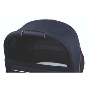 Большой капюшон с козырьком из солнцезащитного материала надежно защитит малыша от непогоды и от прямых солнечных лучей. Часть верхнего слоя капюшона отстегивается. Панорамная вставка из сеточки для комфортной температуры и правильной циркуляции воздуха в теплую погоду.
