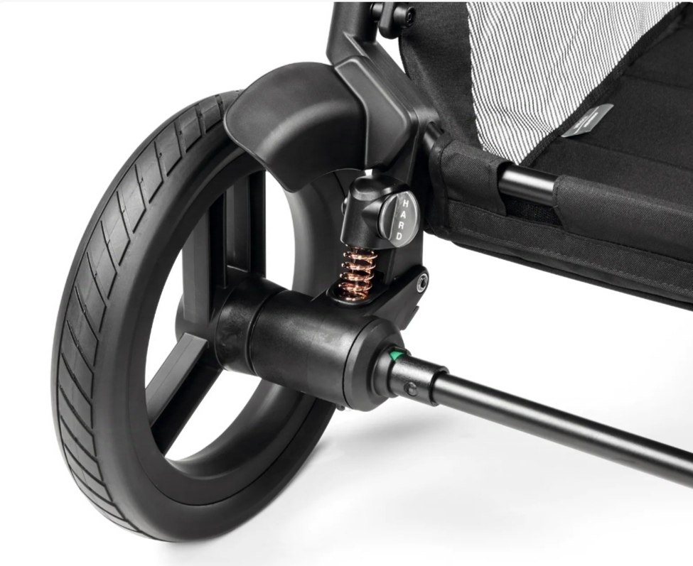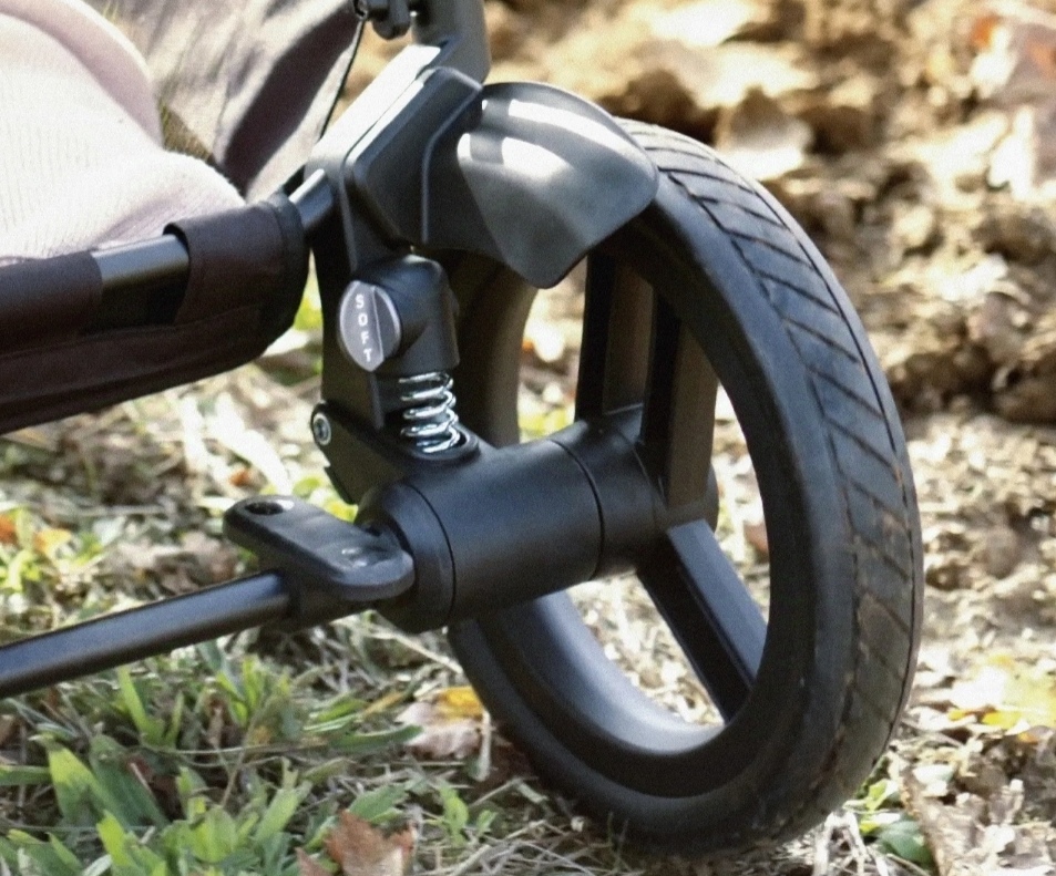 Безупречные ходовые характеристики для прогулок по любой местности. Мягкий ход благодаря большим протекторным колесам, регулируемой подвеске и шарикоподшипникам. Колеса больше, чем в классической модели Veloce. Диаметр передних колес 20 см, задних – 28 см.