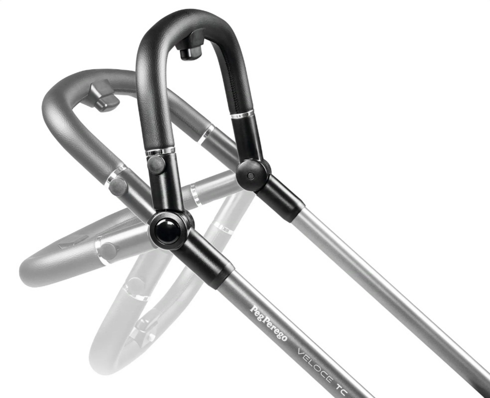 Ручка регулируется в нескольких положениях и позволяет настроить коляску максимально удобно для родителя. Маневренность и дополнительный комфорт обеспечивает обшивка из мягкой эко-кожи.