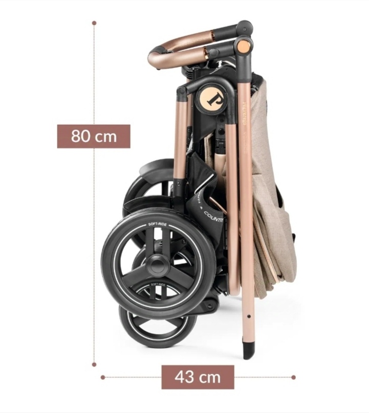 Прогулочная коляска Veloce TC складывается и раскладывается всего одной рукой с помощью специальной централизованной системы складывания, расположенной на ручке. В сложенном виде занимает очень мало места, и сама стоит без опоры, не пачкая ручку и тканевую обивку.