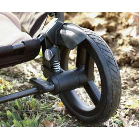 Большие колеса 28 см с пружинной регулируемой подвеской для плавного преодоления неровностей. Передние колеса фиксируются в прямом положении. Светоотражающие вставки обеспечат дополнительную безопасность во время вечерних прогулок.