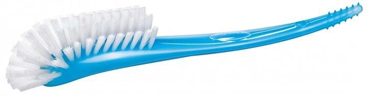 Специально изогнутая щеточка и удобная ручка подходят для тщательной очистки бутылочек с широким горлышком, сосок и других изделий для кормления.