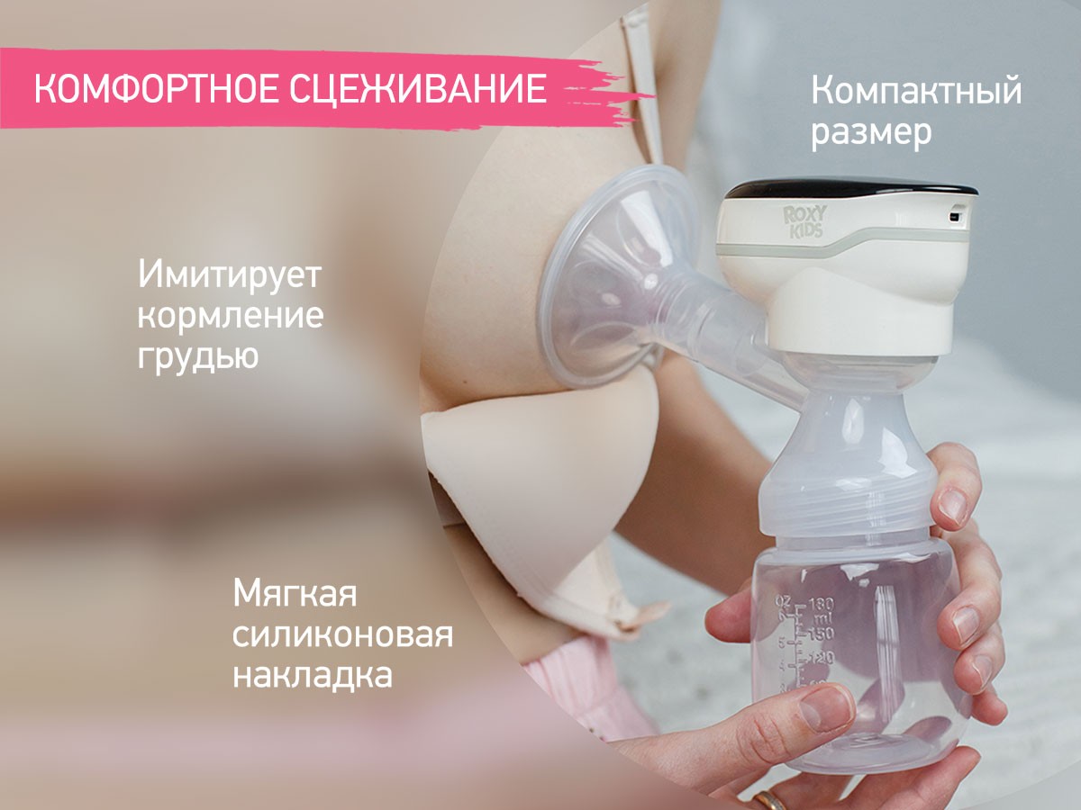 Двухфазный электрический молокоотсос от ROXY-KIDS — незаменимый помощник каждой кормящей мамы. Массажная силиконовая накладка молокосборника герметично облегает грудь, обеспечивая комфортное и эффективное сцеживание. Три режима и девять ступеней регулировки мощности позволяют выбрать комфортные настройки. Функции стимуляции лактации и массажа помогают увеличить приток молока. Компактный дизайн и отсутствие трубок облегчают транспортировку, а сенсорный дисплей и аккумулятор Type-C делают молокоотсос удобным в использовании. В комплект входит защитная крышка для хранения и бутылочка с соской на 180 мл для кормления малыша. Тихий аккумулятор емкостью 1200 мАч обеспечивает несколько часов автономной работы. Наслаждайтесь материнством с ROXY-KIDS!