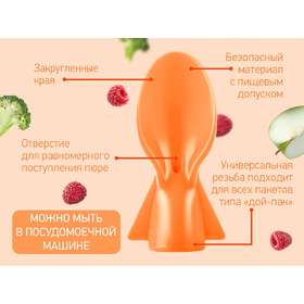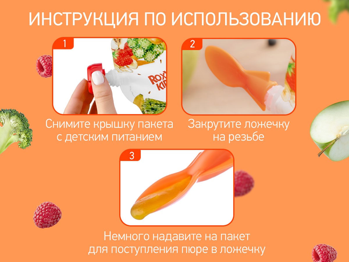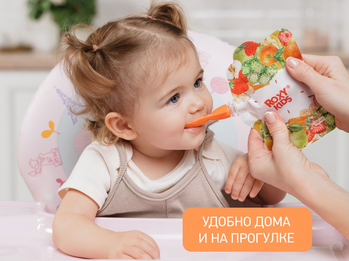 Ложечки ROXY-KIDS для пакетов с детским питанием удобно брать с собой в поездку и на прогулку, чтобы легко покормить малыша фруктовым или овощным пюре, кашей, смузи, йогуртом и мягким творогом. Пюре поступает в ложку небольшими порциями, поэтому маме удобно кормить малыша даже в дороге! Диаметр насадки подходит ко всем пакетам с детским питанием типа «дой-пак». Универсальные ложечки можно использовать как с детским питанием из магазина, так и с многоразовыми паучами для пюре. Ложки изготовлены из высококачественного пищевого пластика, подходят для мытья в посудомоечной машине.