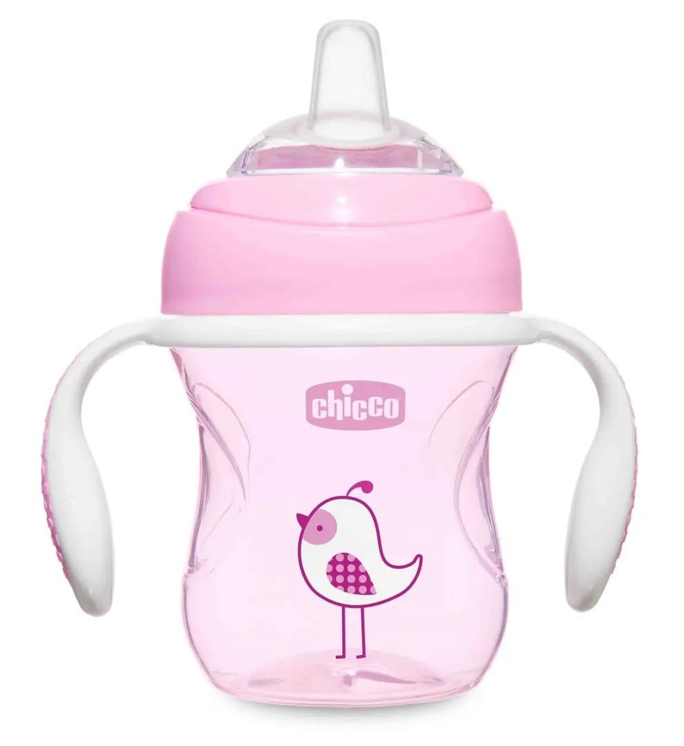 Поильник Chicco Transition Cup (силиконовый носик), 4 мес+, 200 мл, розовый, арт.340728529