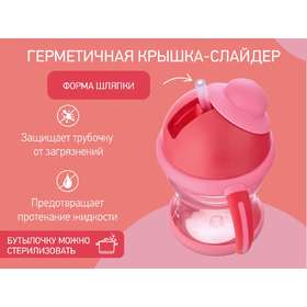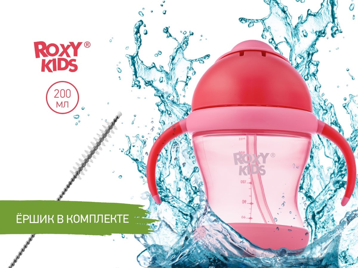 Поильник-непроливайка с трубочкой, 200 мл (розовый) 9 мес+ ROXY-KIDS арт.RFD-008-P