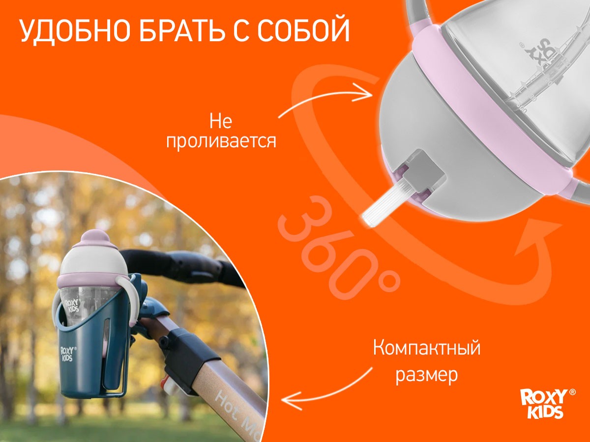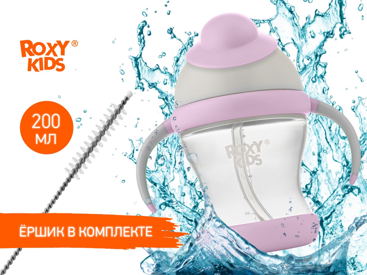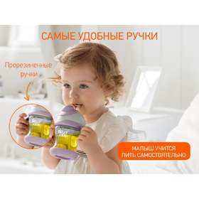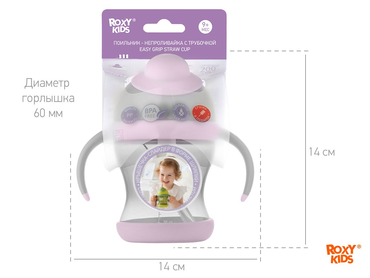 Поильник-непроливайка с трубочкой, 200 мл (серо-лавандовый) 9 мес+ ROXY-KIDS арт.RFD-008-Gr