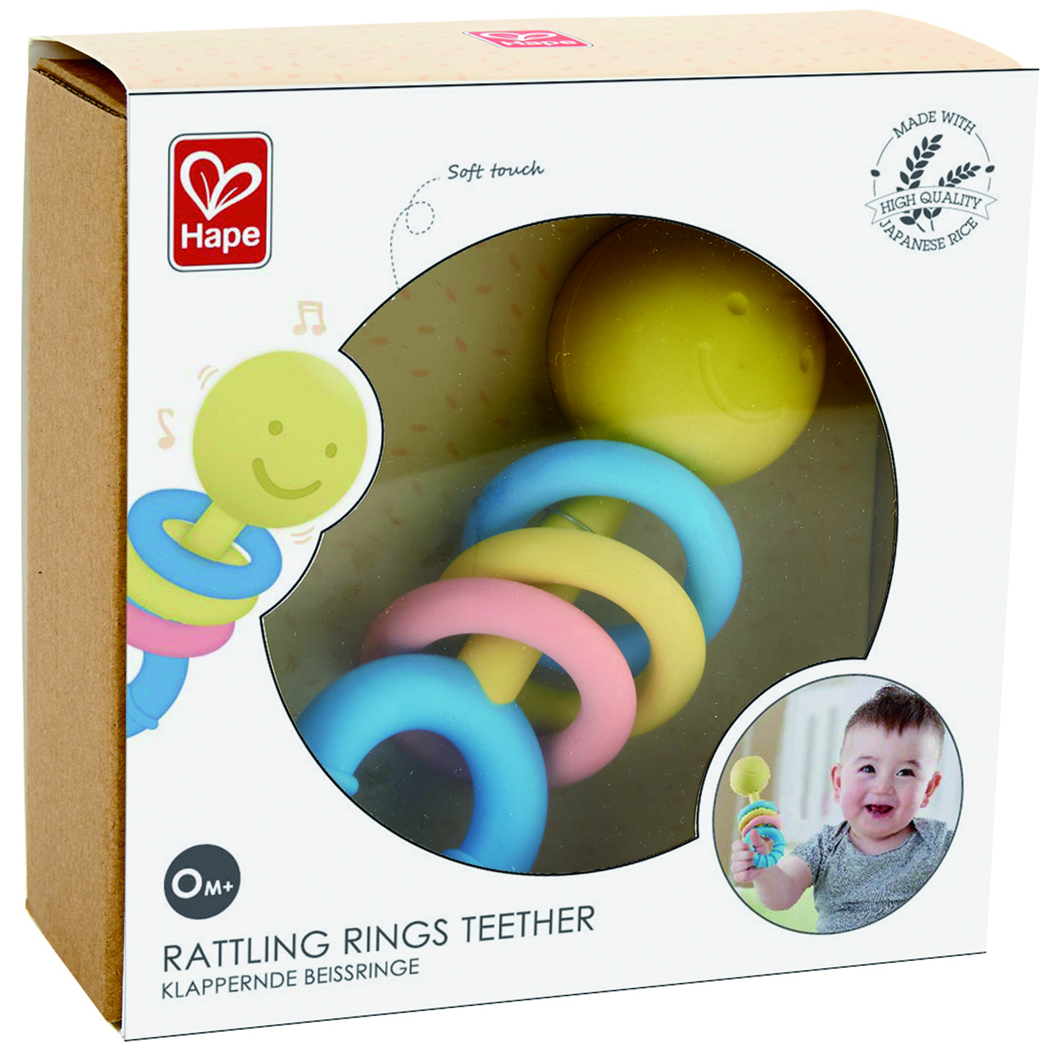 Hape Прорезыватель-погремушка Улыбка с цветными кольцами E0024_HP